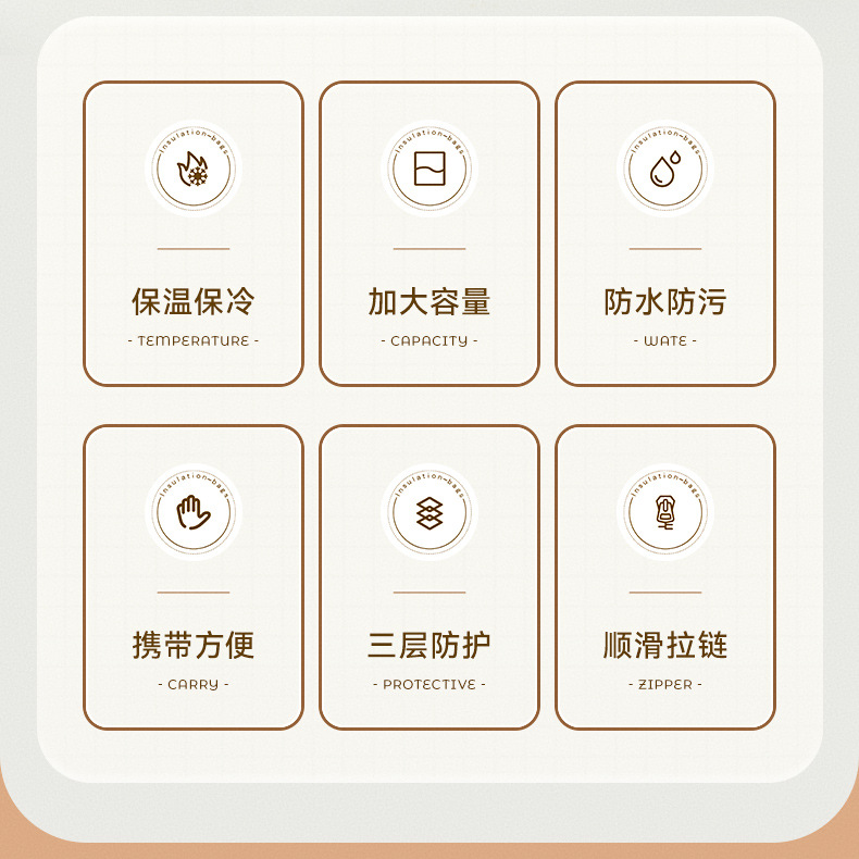 • 产品材质:420D防水防污布、铝箔、珍珠棉、皮革