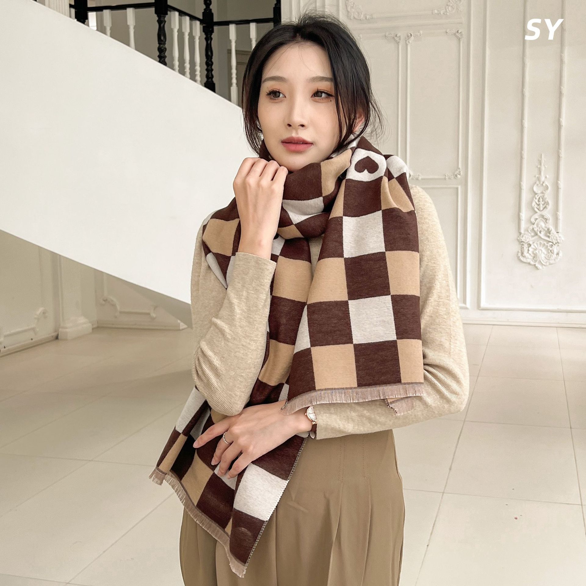 2023 새로운 가을과 겨울 3 색 체스 판 격자 무늬 사랑 스카프 한국 학생 스카프 따뜻한 목도리 다목적 양면스토어 가기