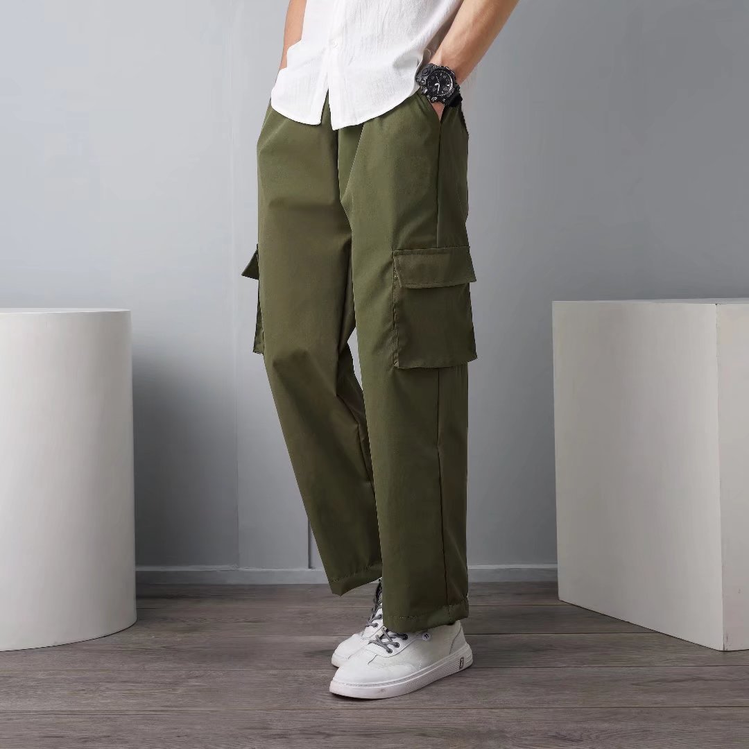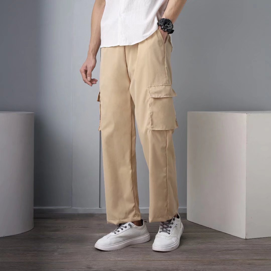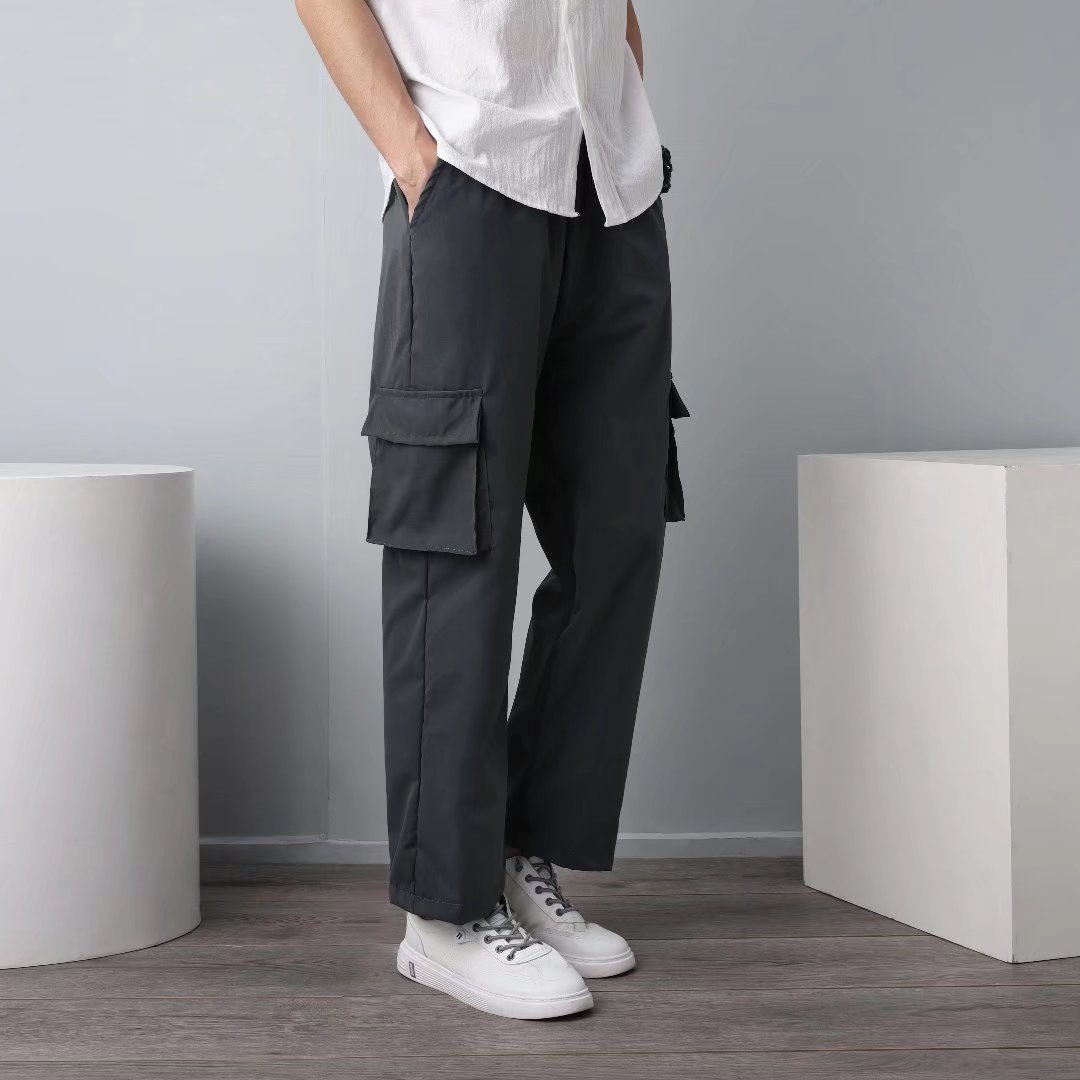 주의 바지 크롭 팬츠 스트레이트 트렌디 패션 캐주얼 봄 단색 캐주얼 바지 남성용 포켓 장식 청소년 인기