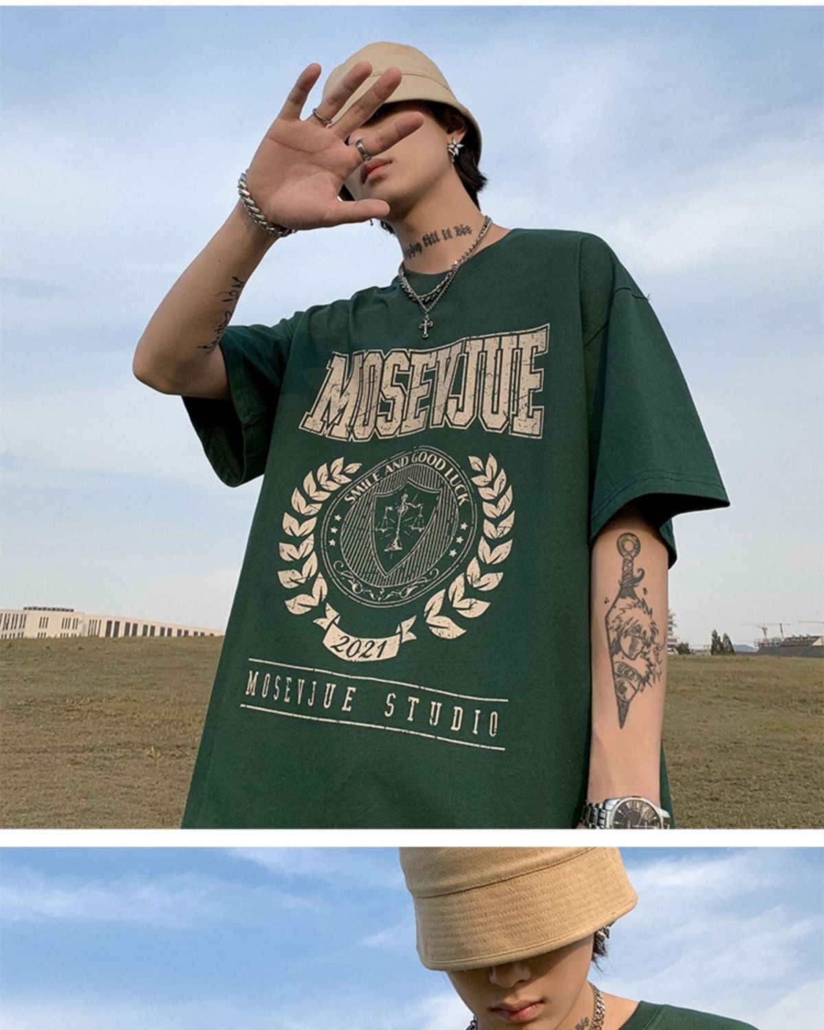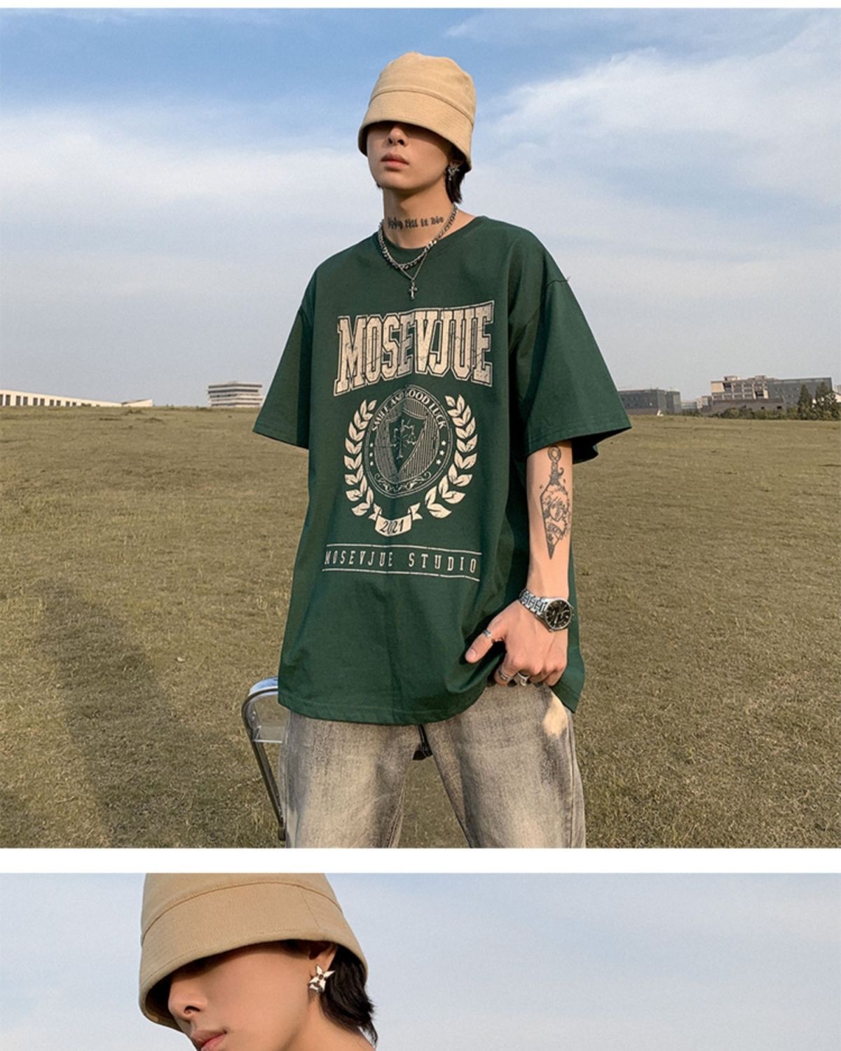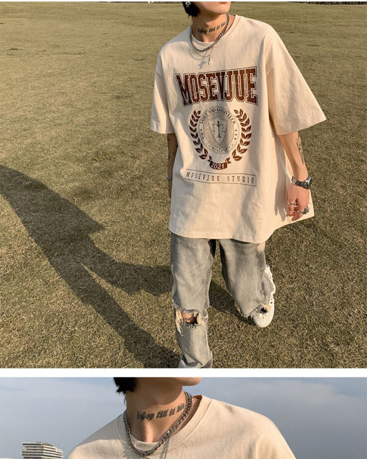 아메리칸 헤비웨이트 코튼 반팔 티셔츠 남성용 신제품 루즈 반팔 원피스 드롭 배송 맞춤형 클래스 유니폼