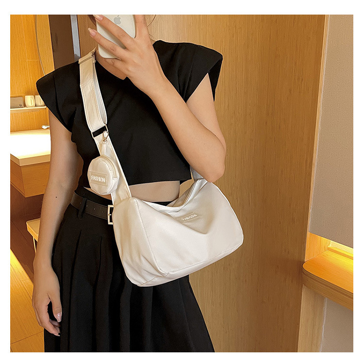大容量时尚纯色简约尼龙布休闲包2023夏季通勤洋气单肩斜挎包女包