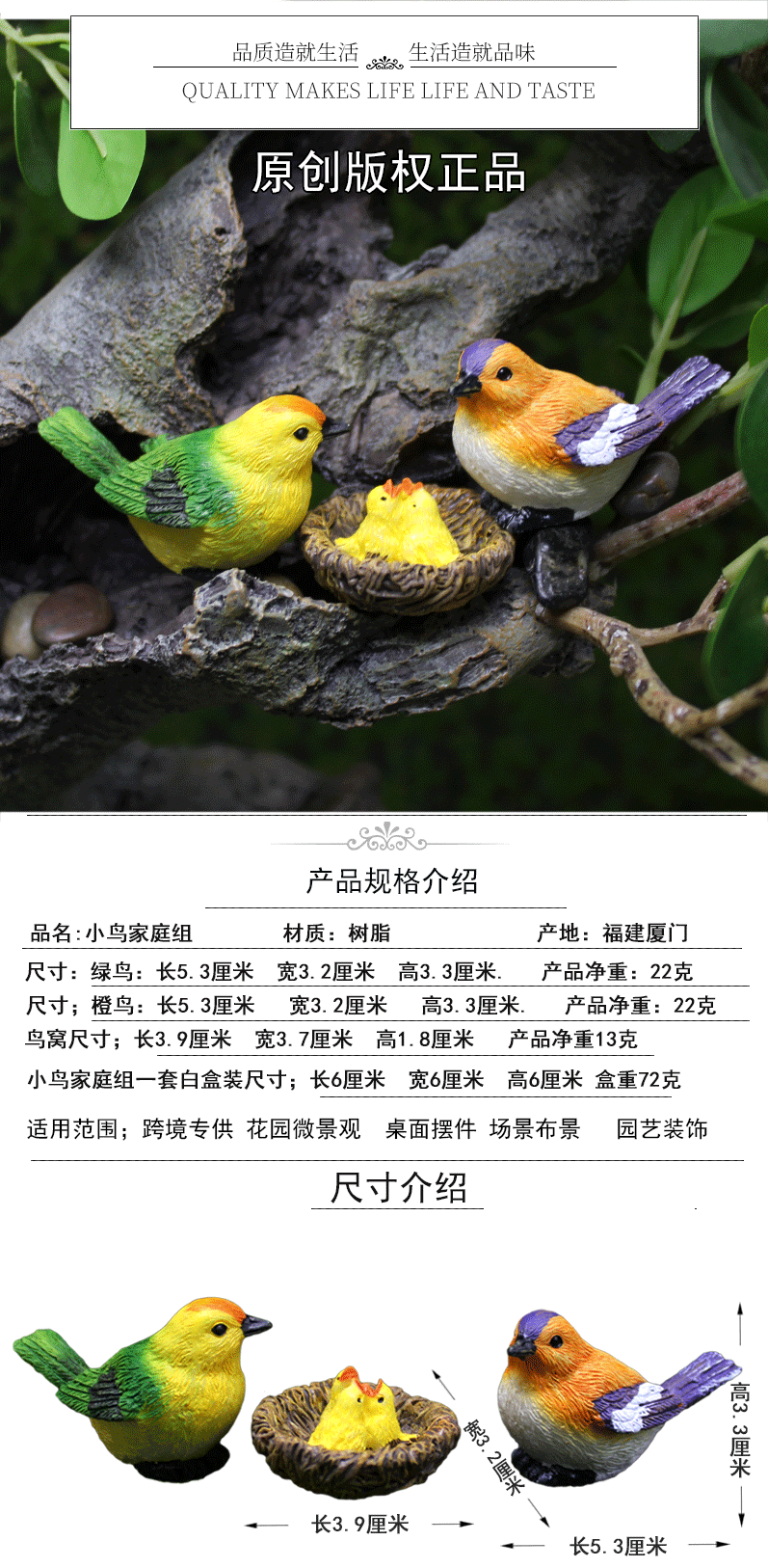 모스 마이크로 풍경 새 시뮬레이션 수지 공예 작은 장식품 다육 질 조경 국경 간 정원 장식 새 둥지
