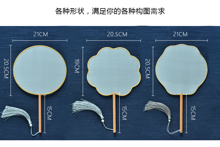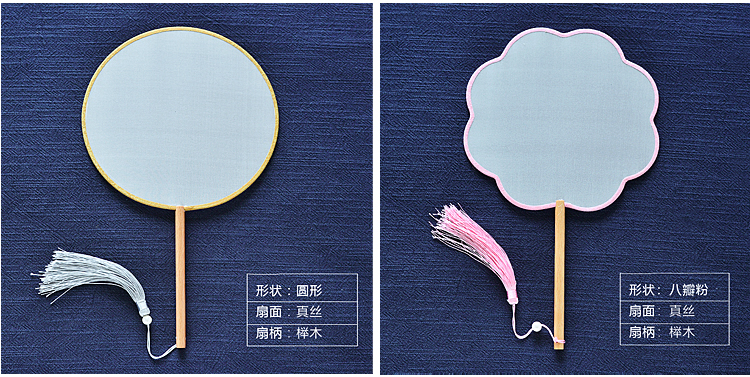 3ZBY 실크 빈 라운드 팬 긴 손잡이 너도밤 나무 페인트 그림 자수 말린 꽃 DIY 재료 포장 성숙한 원