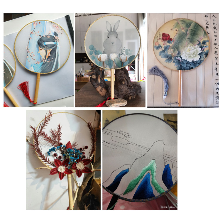 3ZBY 실크 빈 라운드 팬 긴 손잡이 너도밤 나무 페인트 그림 자수 말린 꽃 DIY 재료 포장 성숙한 원스토어 가기