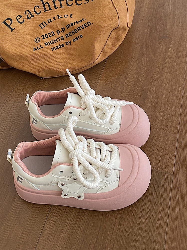 진 미 빅 헤드 못생긴 귀여운 신발 여성용 2023 여름 새로운 모든 매치 라운드 헤드 화이트 슈즈 파우더 여성용 팻 스타 슈즈 여성용 보드 슈즈스토어 가기