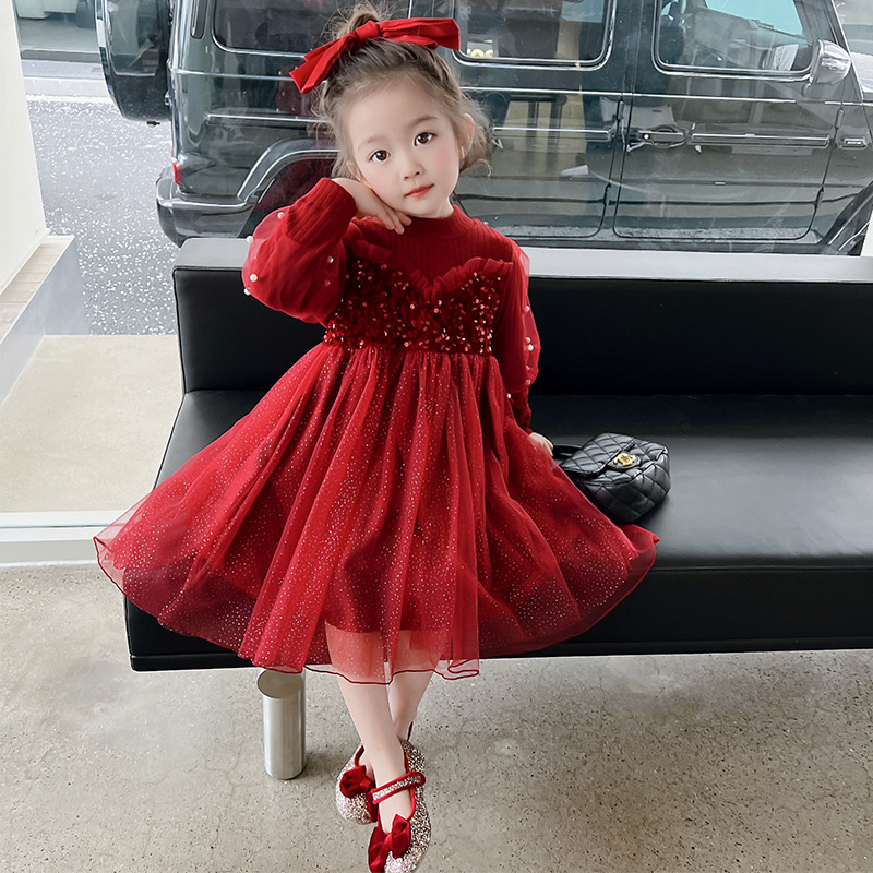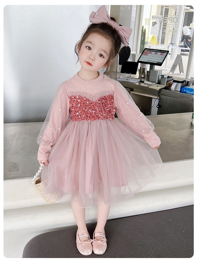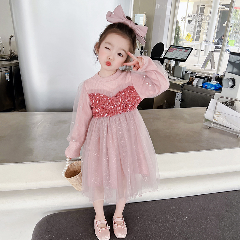 소녀의 세련된 원피스 봄과 가을 원피스 아기 소녀의 원피스 원피스 어린이의 유행 슈퍼 요정 메쉬 공주 원피스 유행스토어 가기