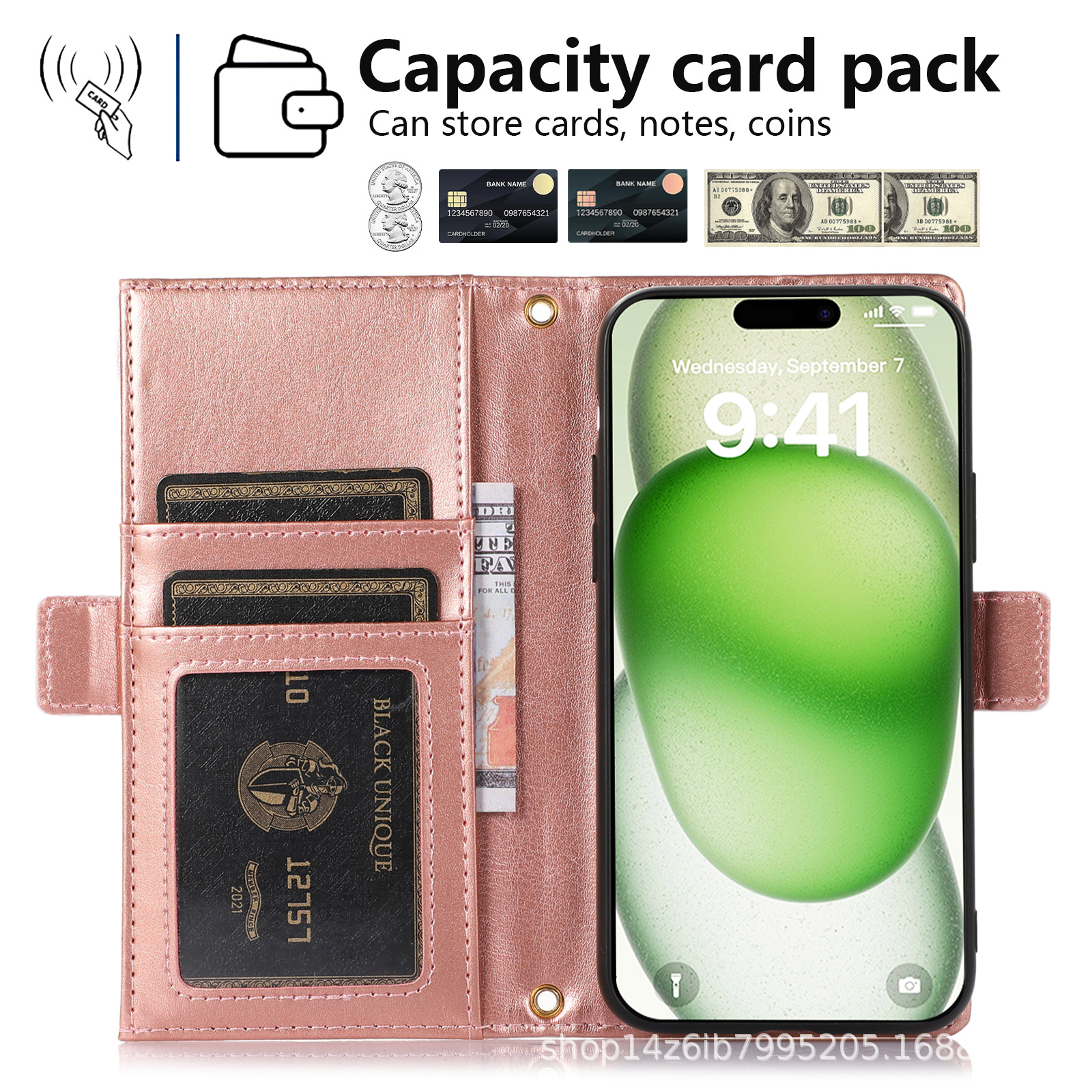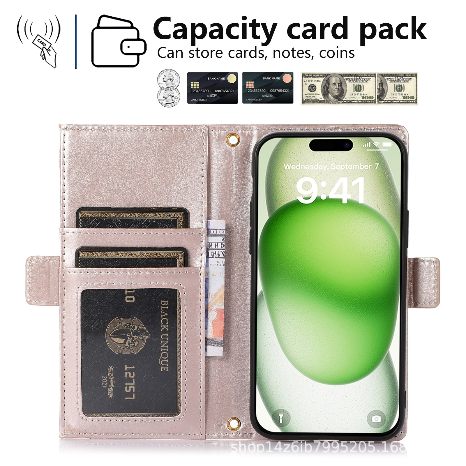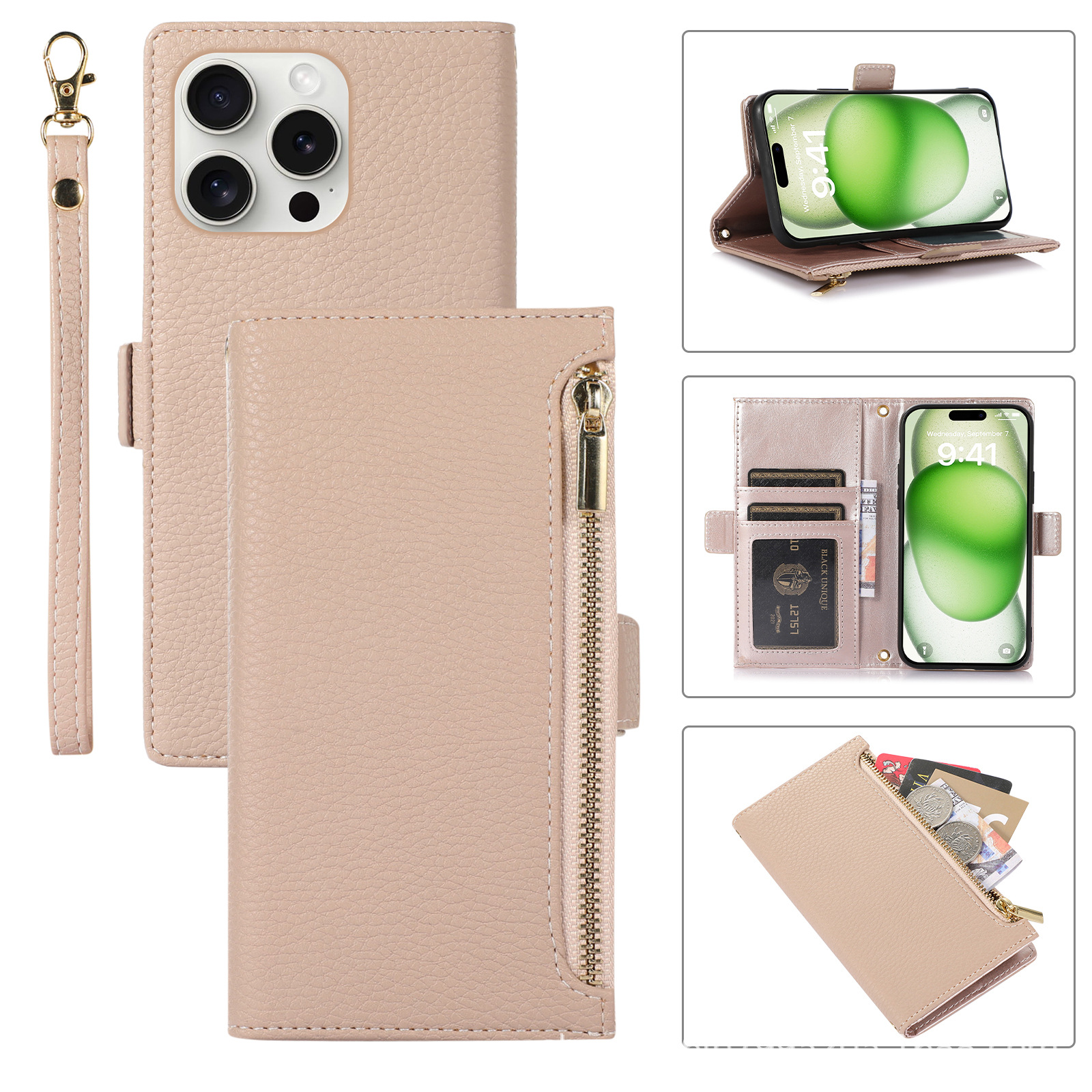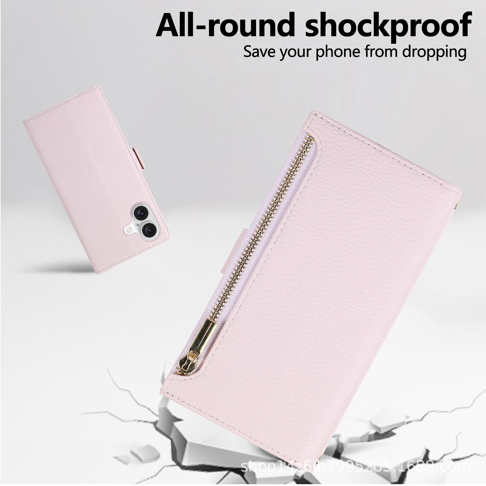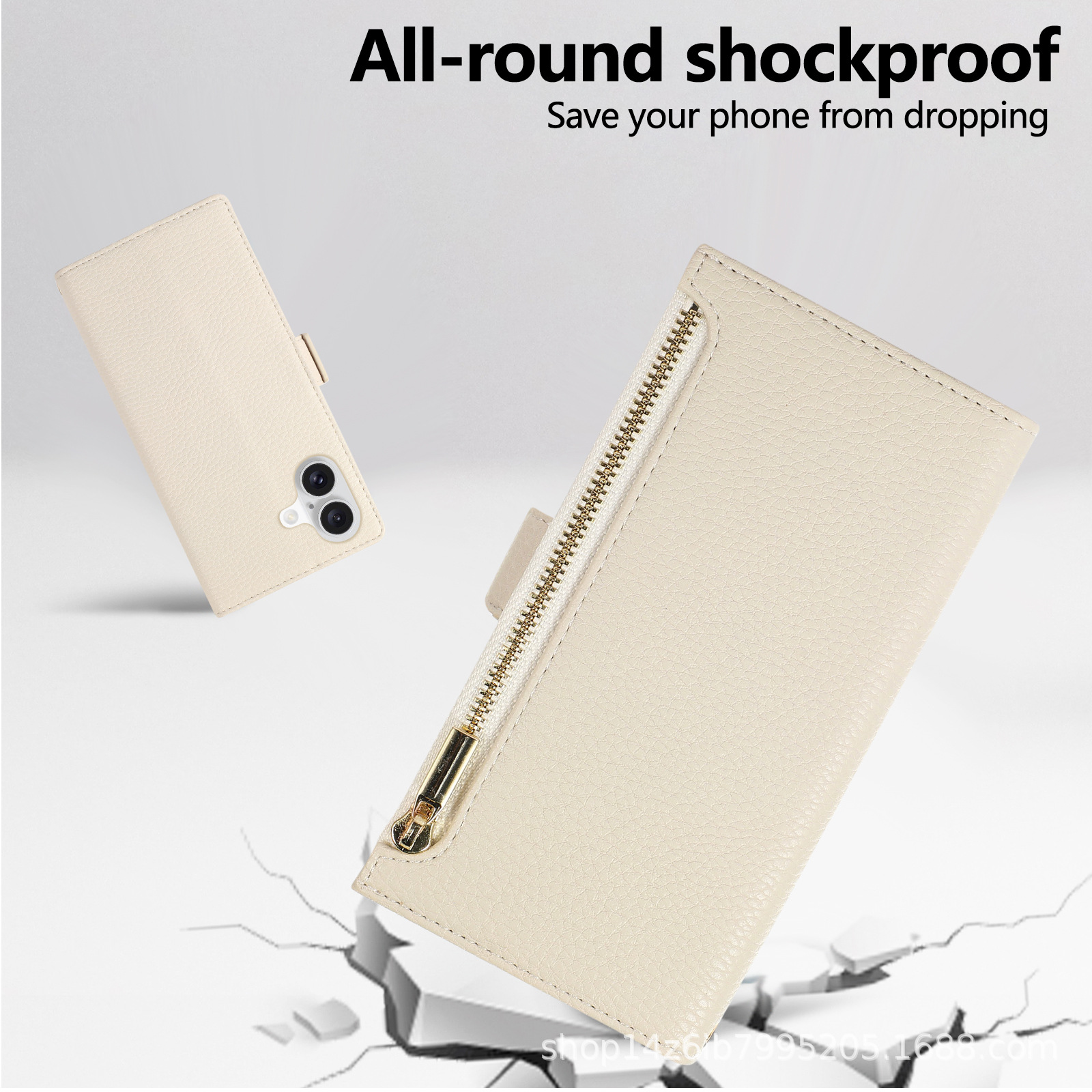 Apple 16 Pro Max 플립 폰 가죽 케이스 카드 iPhone 16E 15 페블 보호 케이스에 적합스토어 가기