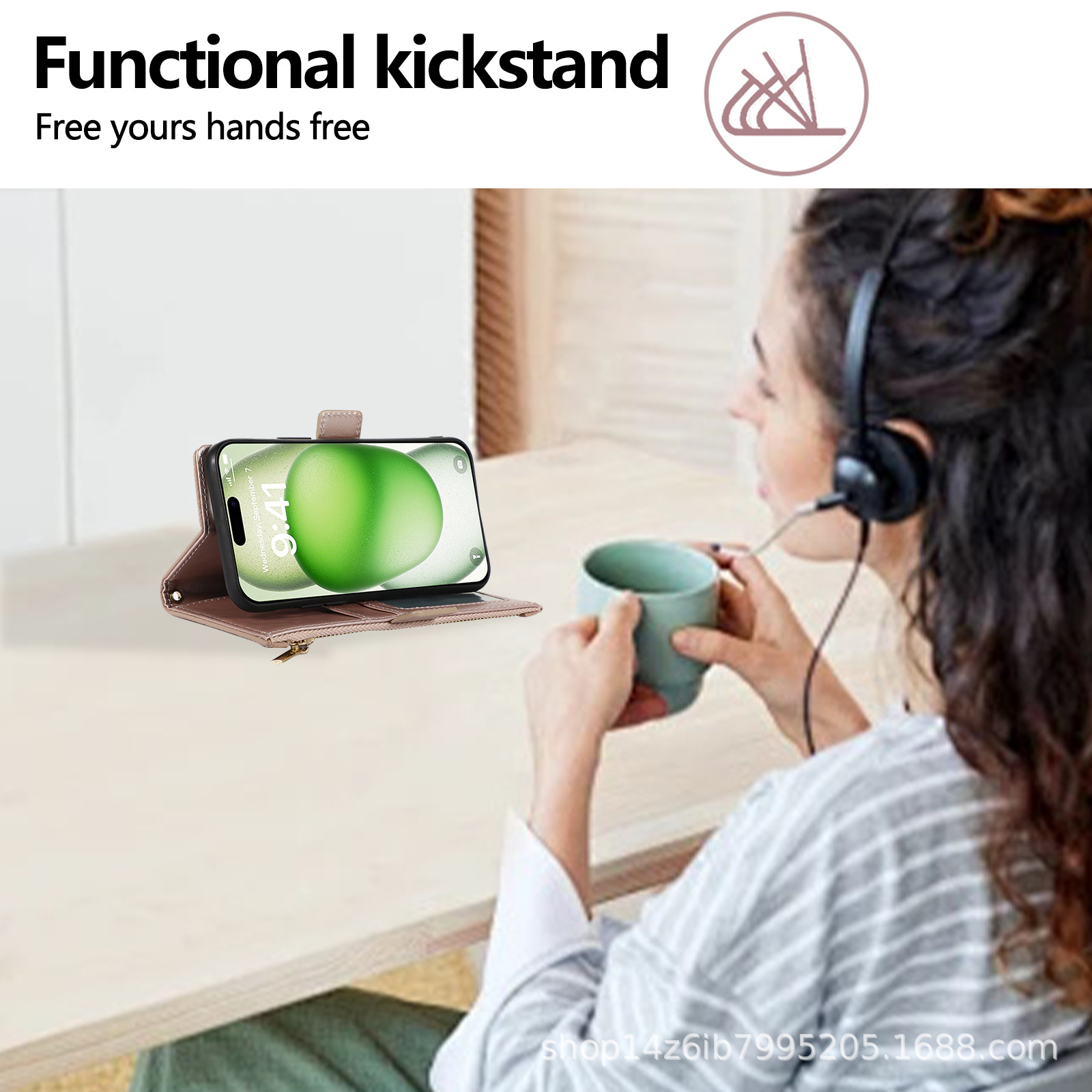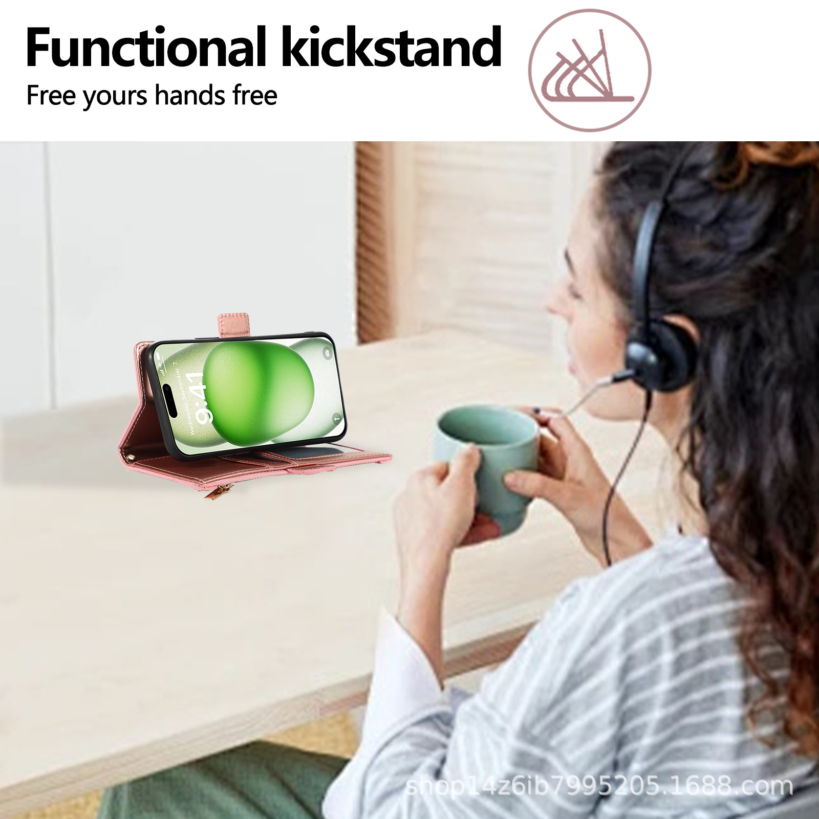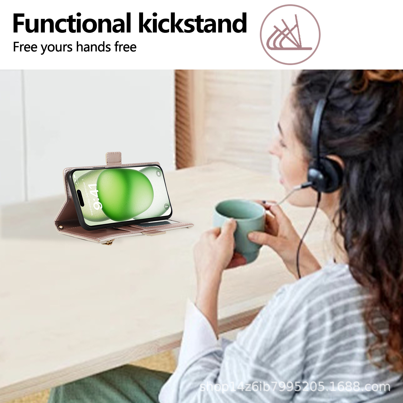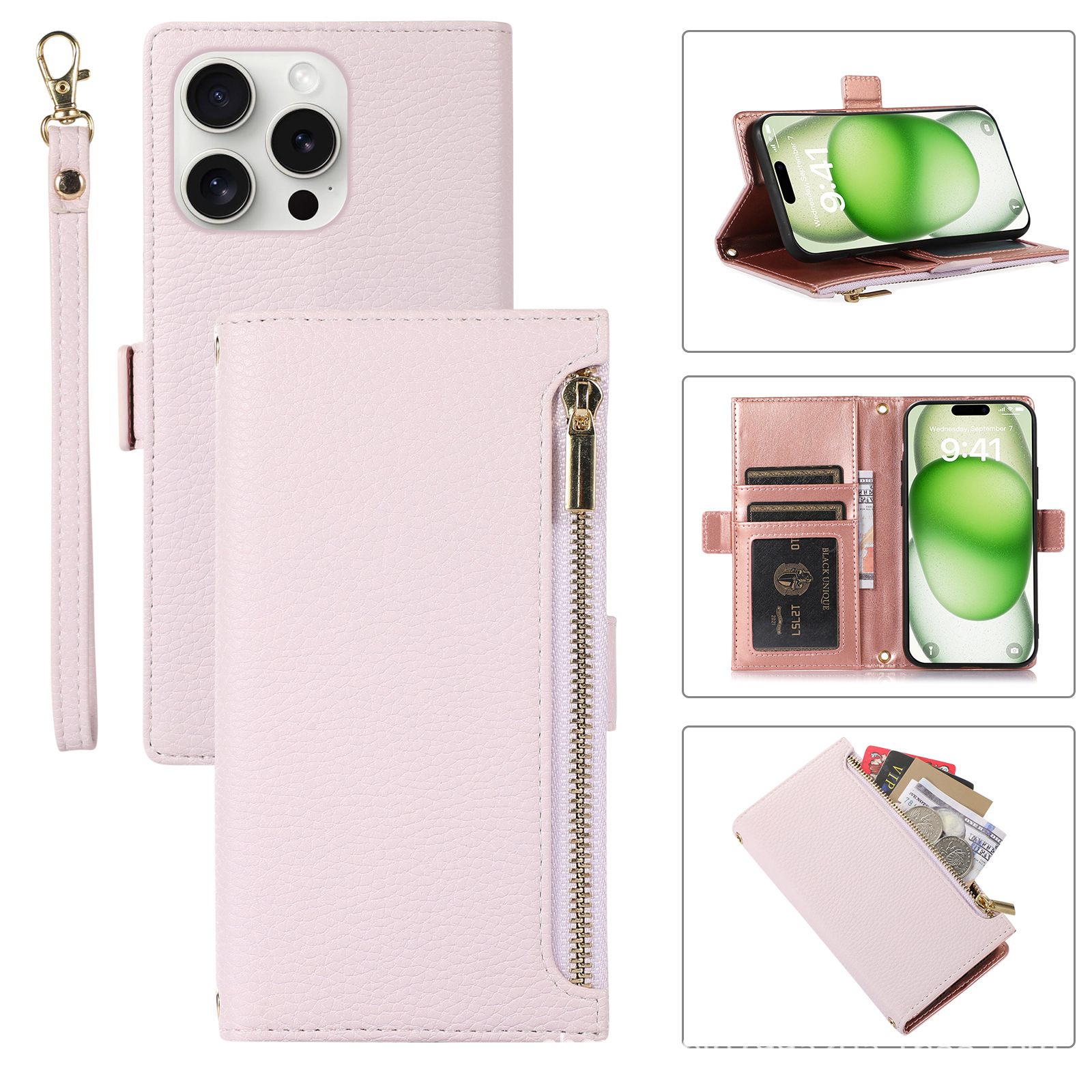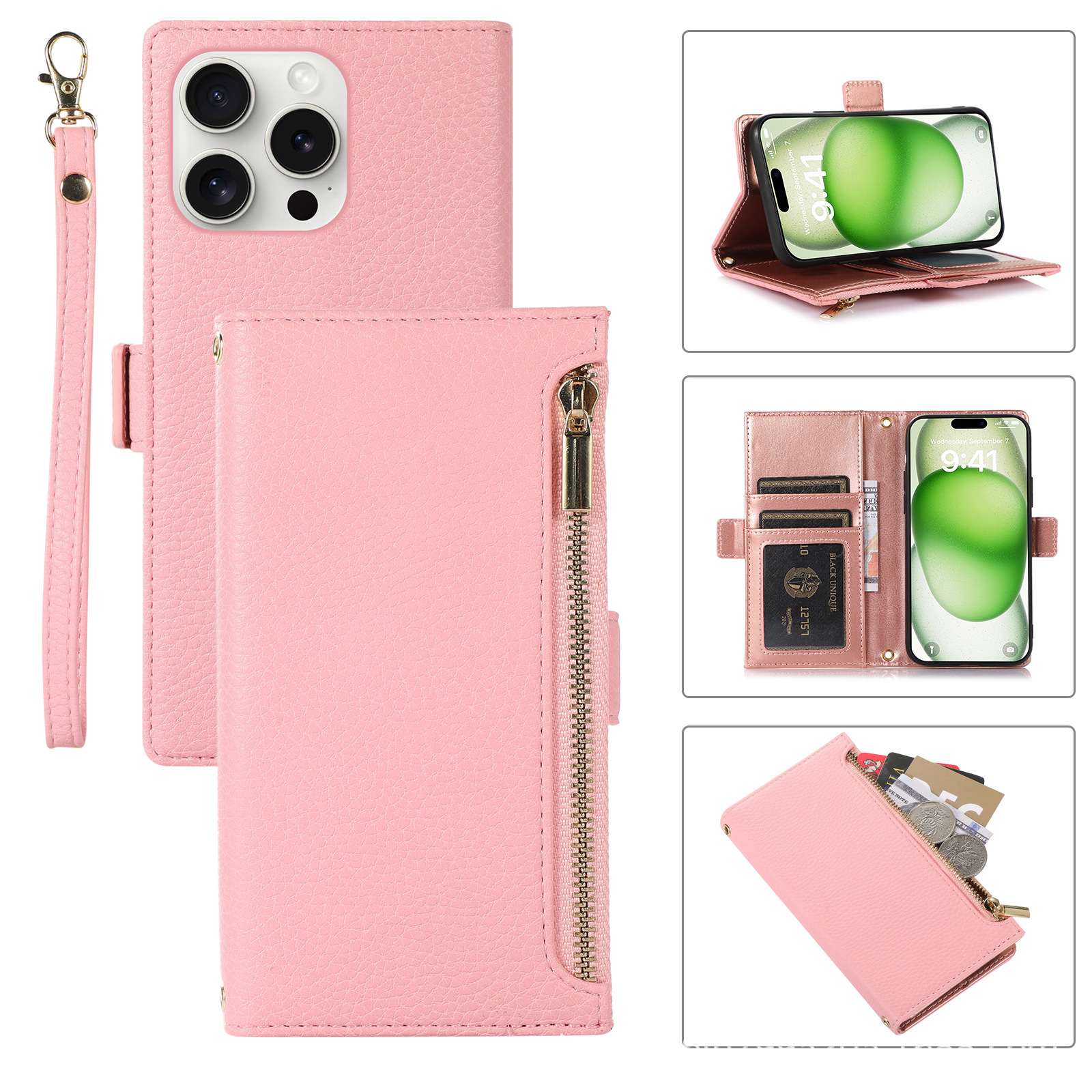 Apple 16 Pro Max 플립 폰 가죽 케이스 카드 iPhone 16E 15 페블 보호 케이스에 적합스토어 가기