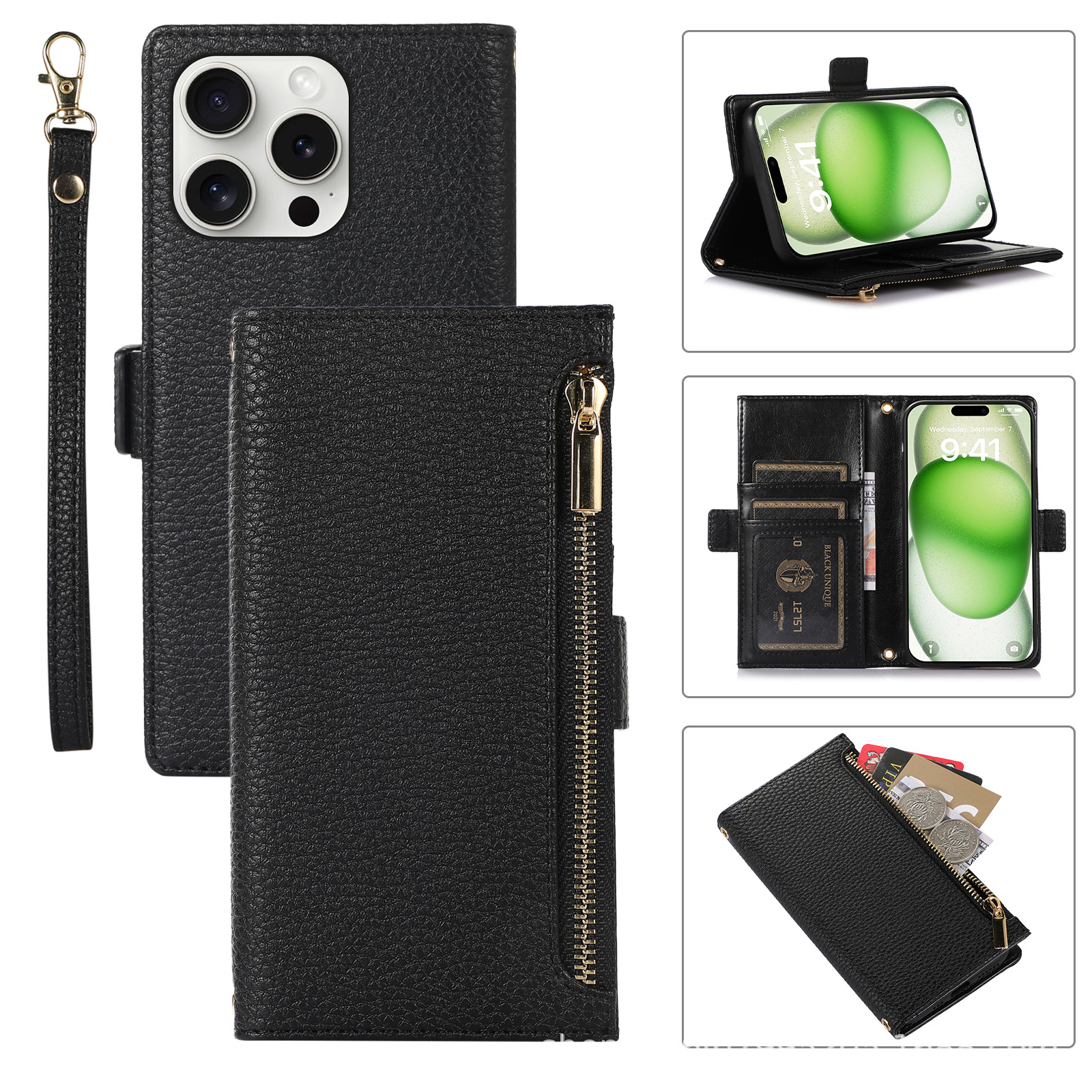 Apple 16 Pro Max 플립 폰 가죽 케이스 카드 iPhone 16E 15 페블 보호 케이스에 적합