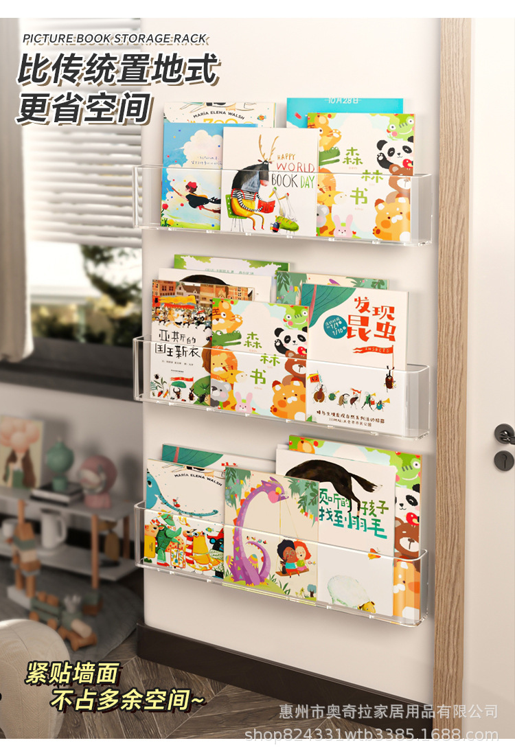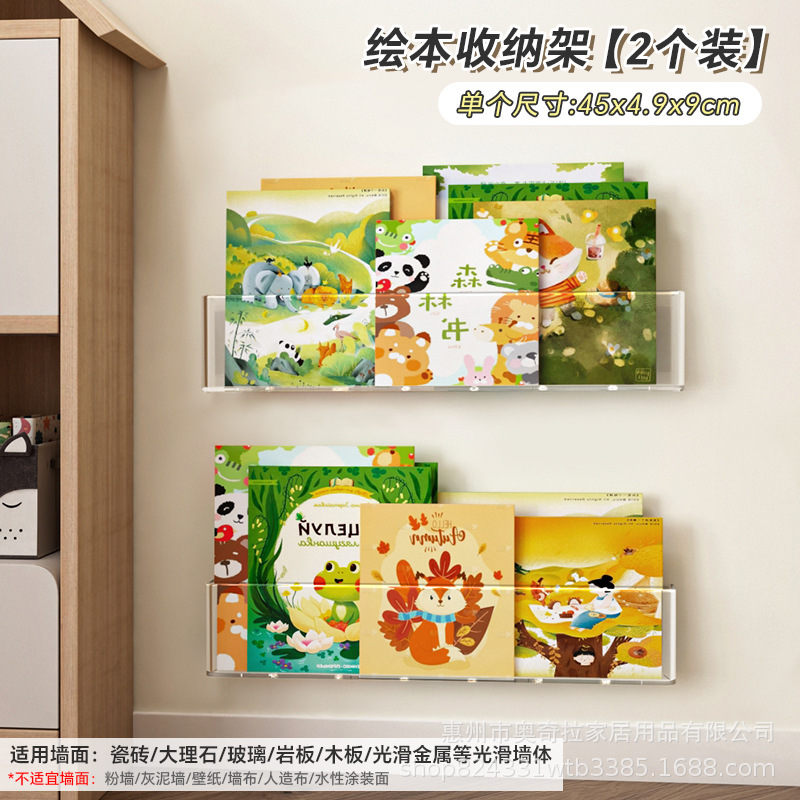 아크릴 벽걸이 그림책 디스플레이 스탠드 투명 간단한 펀치 프리 벽 통로 옥스포드 트리 잡지 어린이 책장스토어 가기