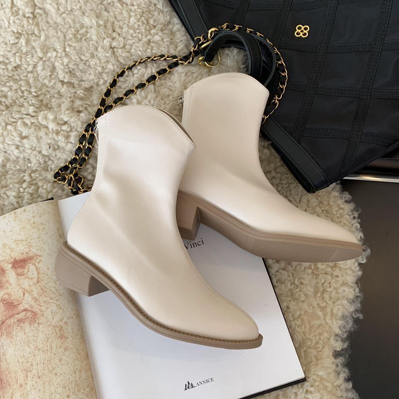 미드 배럴 롱 웨스턴 카우보이 부츠 여성 신발 틈새 발목 부츠 화이트 나이트 프렌치 부츠 봄과 가을 싱글 부츠