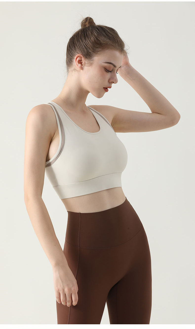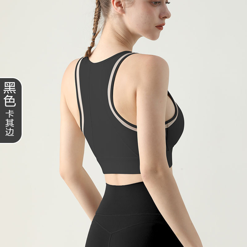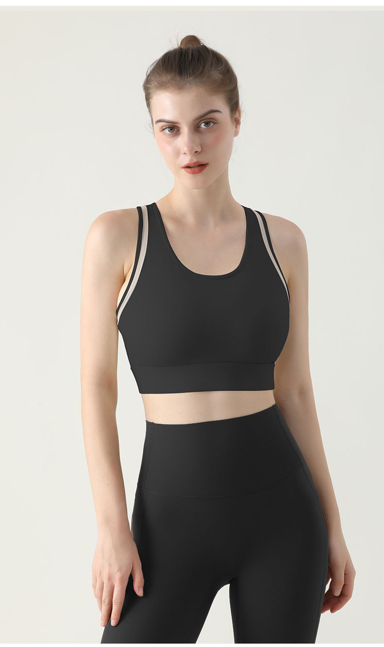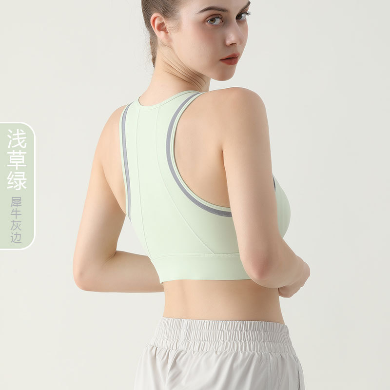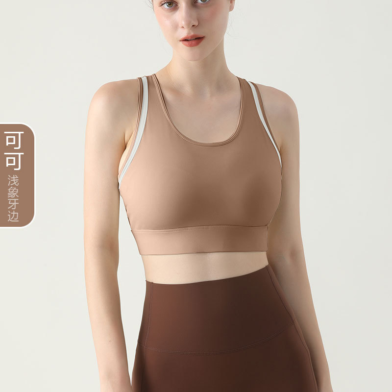 스포츠 속옷 충격 방지 고정 컵 대비 컬러 조끼 여성의 아름다운 백 요가 훈련 야외 피트니스 탑 통기성 브래지어