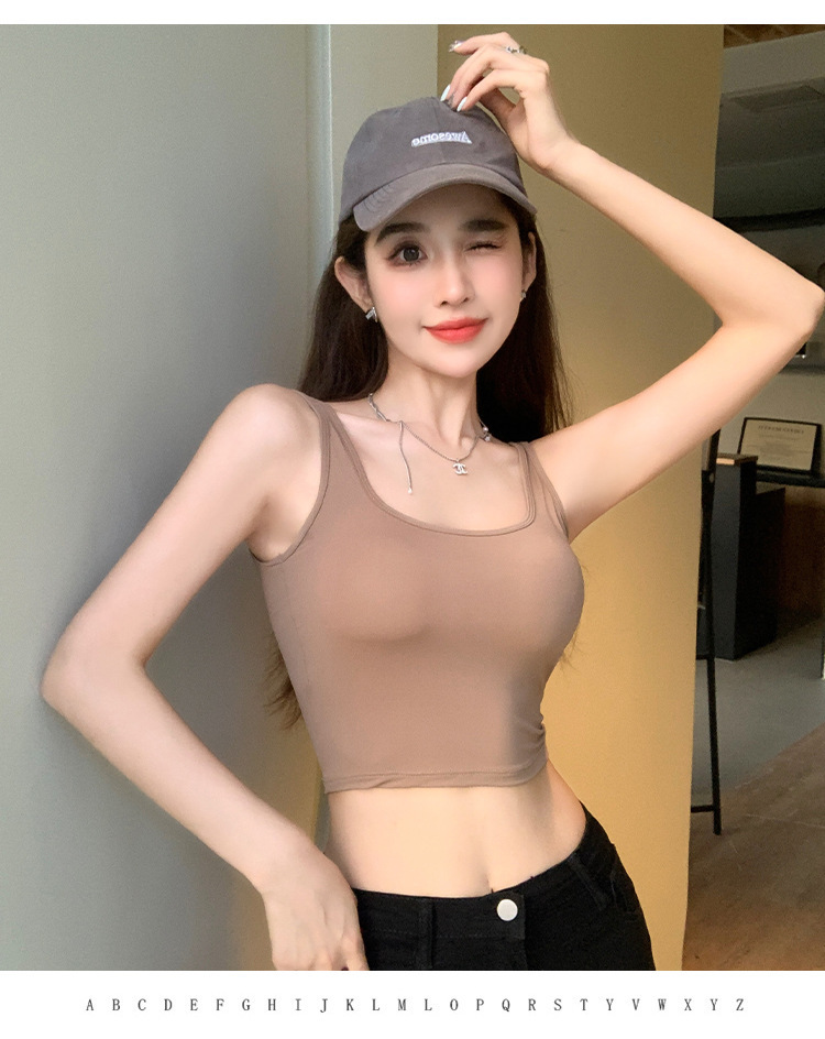 가슴 패드 랩이있는 여성용 심리스 아이스 실크 캐미솔 가슴 슬림핏 편안한 섹시한 등이없는 짧은 광대역 튜브 탑