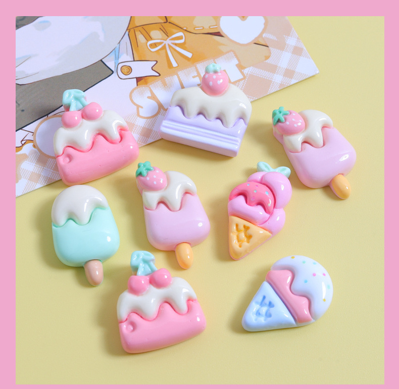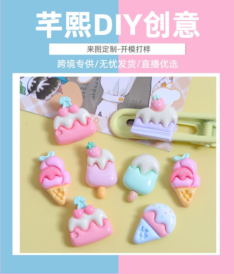 만화 아이스크림 달콤한 DIY 크림 접착제 휴대 전화 쉘 보석 헤어 클립 수지 액세서리 창조적 인 신발 버클스토어 가기
