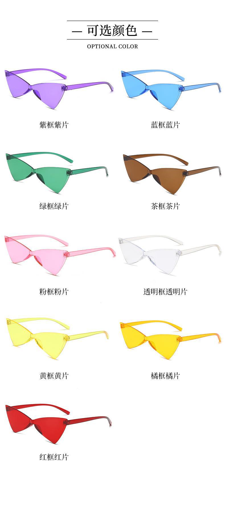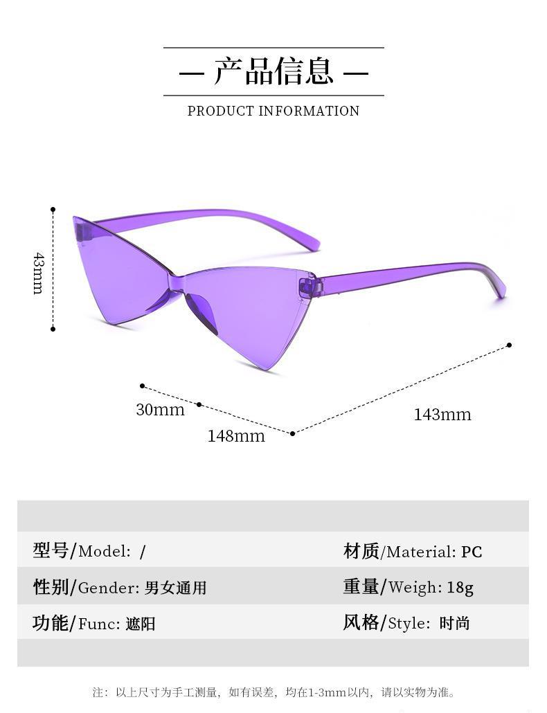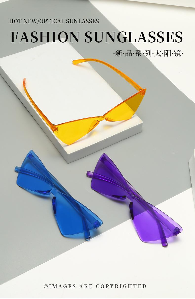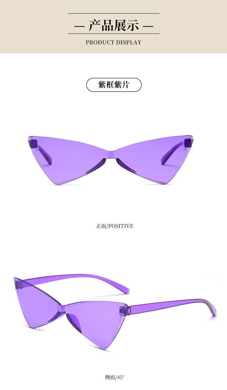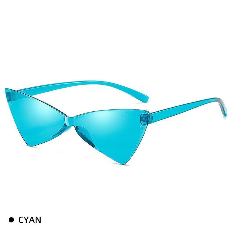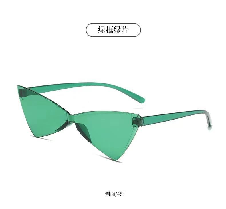 새로운 크로스 보더 폭발 삼각형 고양이 눈 선글라스 올인원 나비 넥타이 캔디 컬러 댄스 빈티지 여성용 선글라스