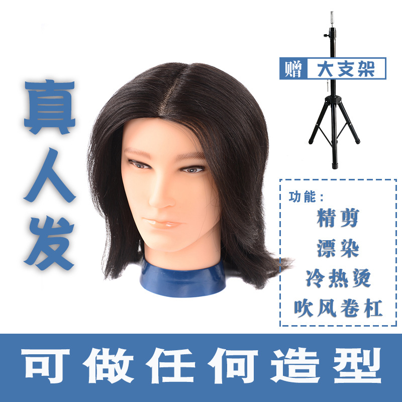 미용 헤드 모델 헤드 남성용 더미 헤드 짧은 머리는 파마 및 염색 할 수 있습니다 전체 실제 헤어 헤드 모델 미용실 헤어 커팅 특수 장난감 헤드