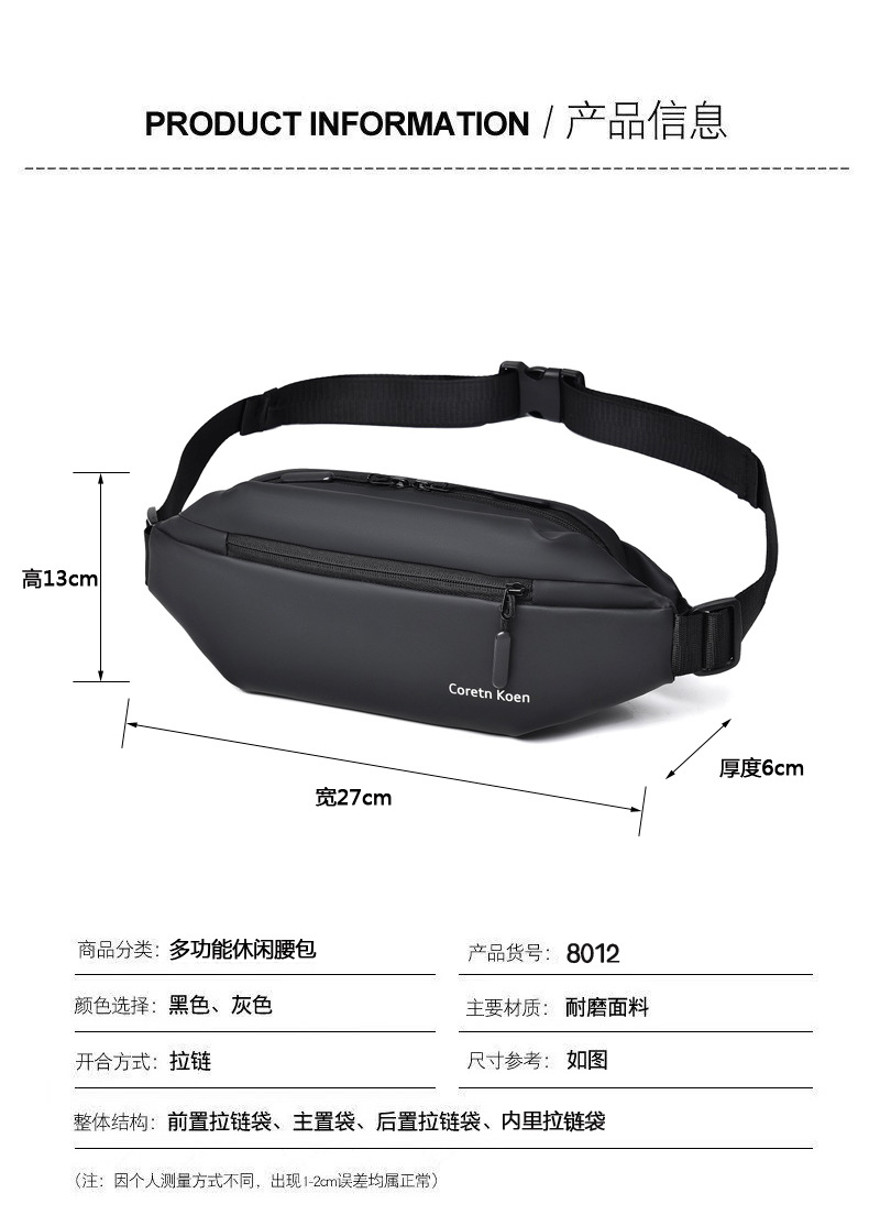 남자의 작은 허리 가방 크로스 보더 패션 크로스 바디 백 2023 새로운 스타일 심플 스타일 다기능 가방 휴대용 보관 가방 방수