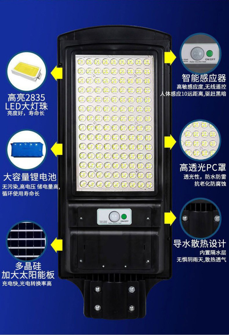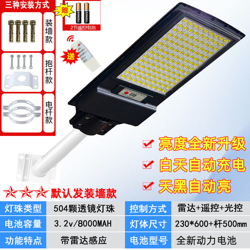 태양 통합 가로등 가구 인체 유도 야외 정원 빛 새로운 농촌 조명