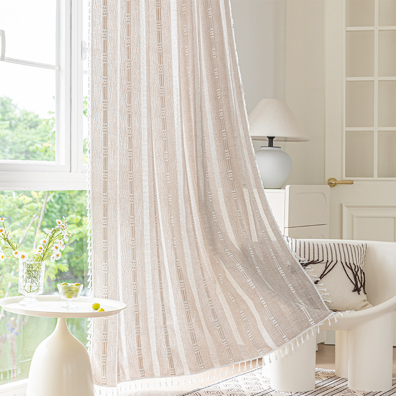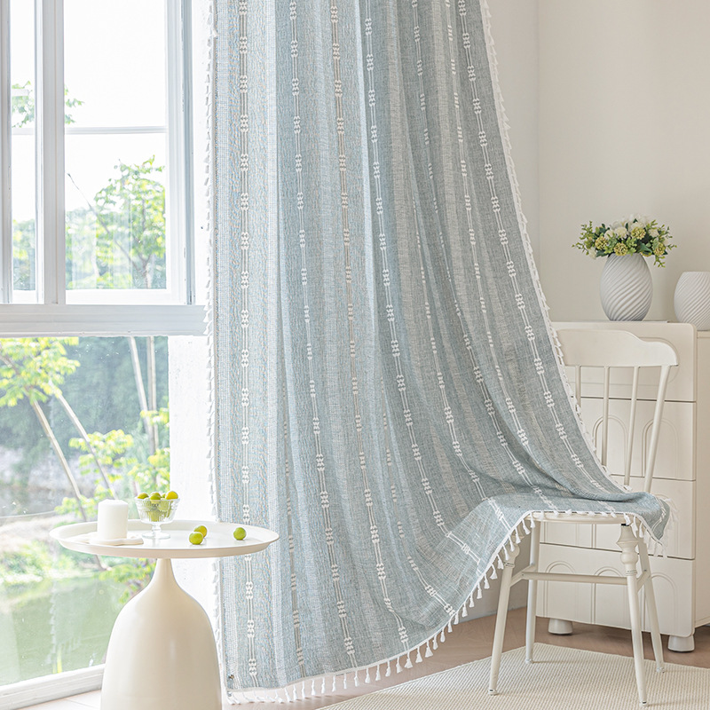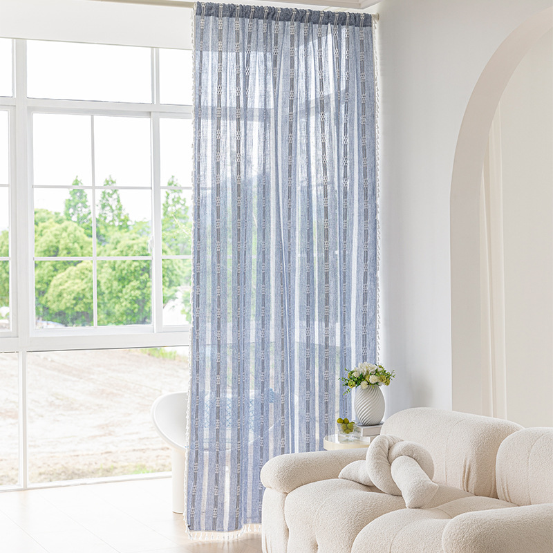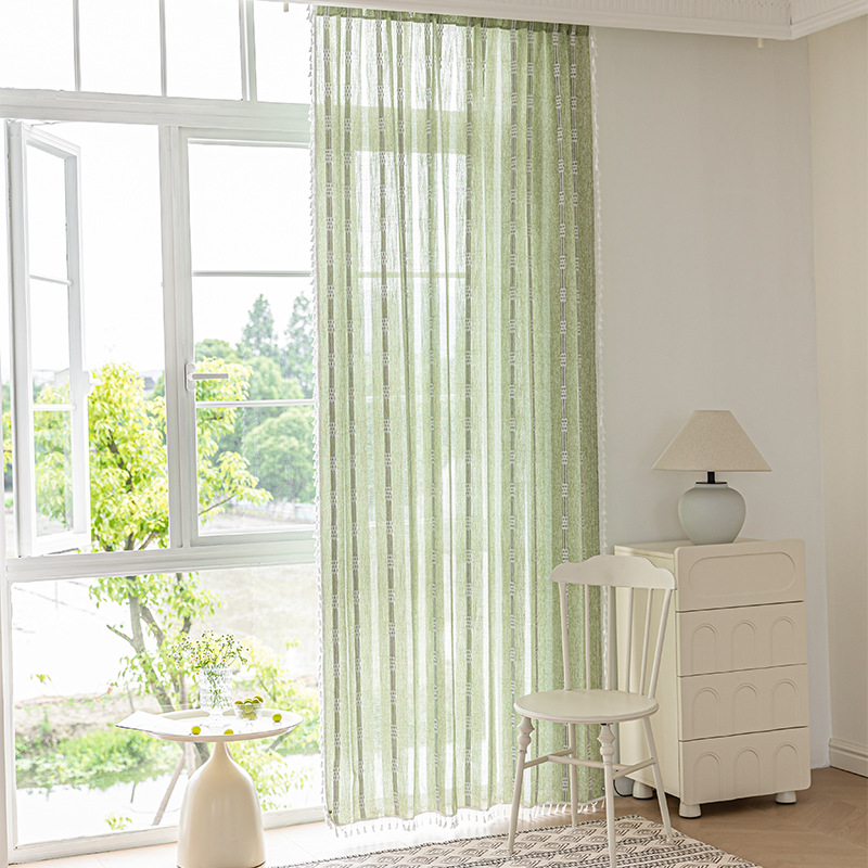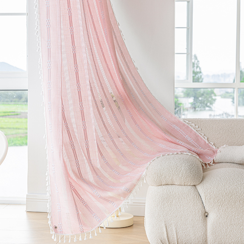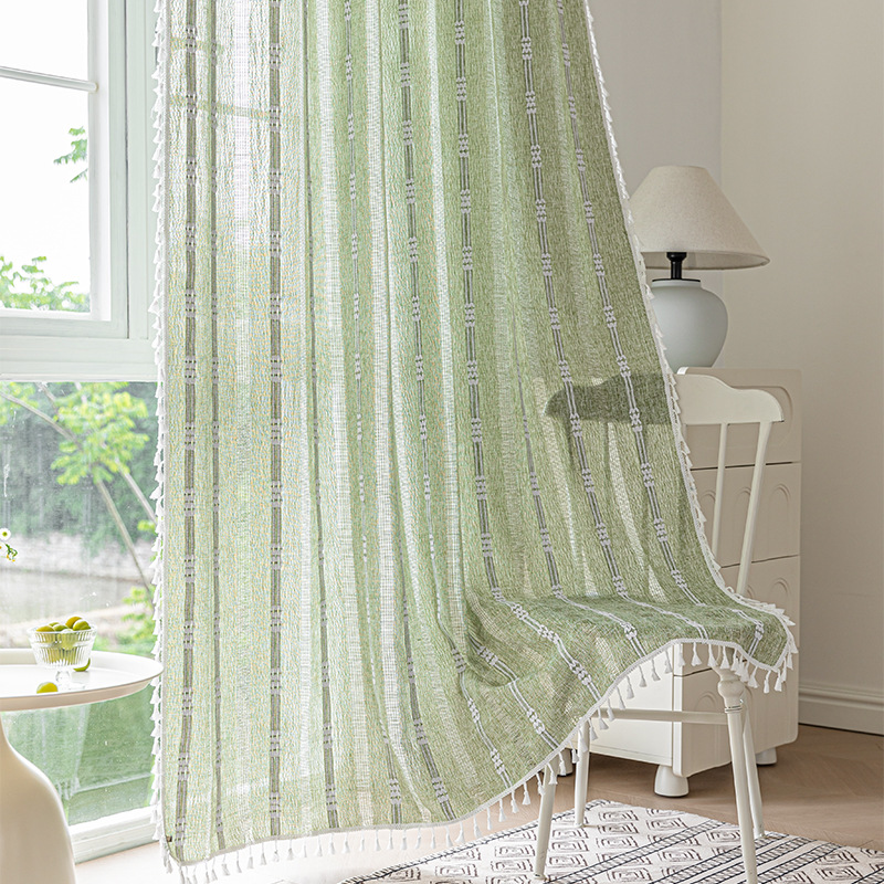 북유럽 면화 및 린넨 커튼 전용 크로스 보더 멀티 컬러 단색면 및 린넨 원사 반투명 침실 거실 바닥 커튼