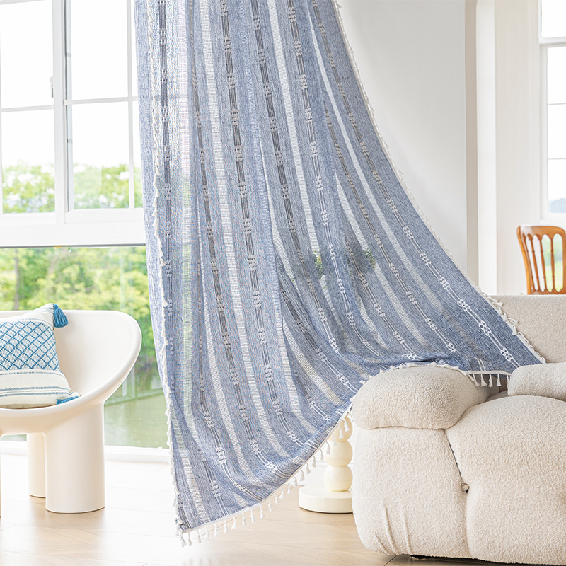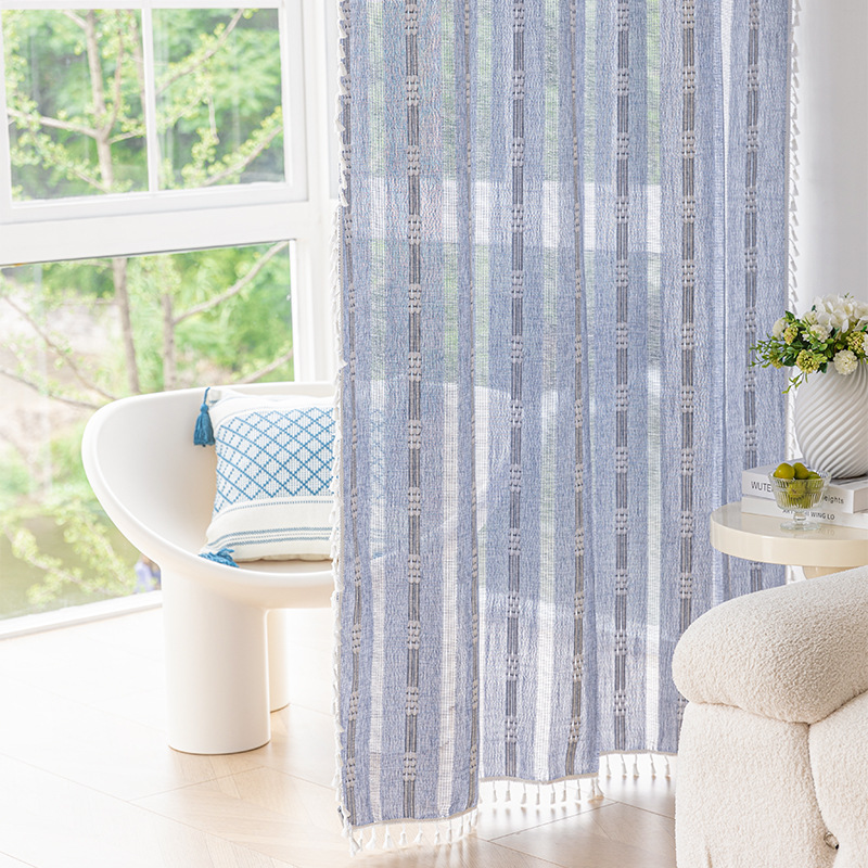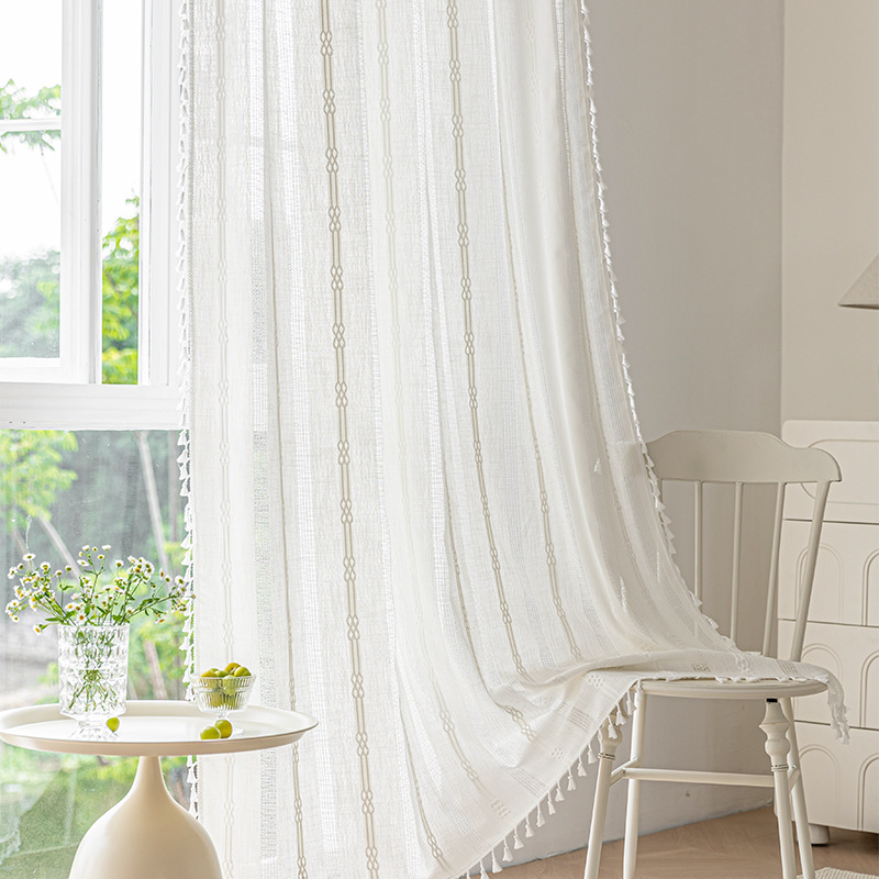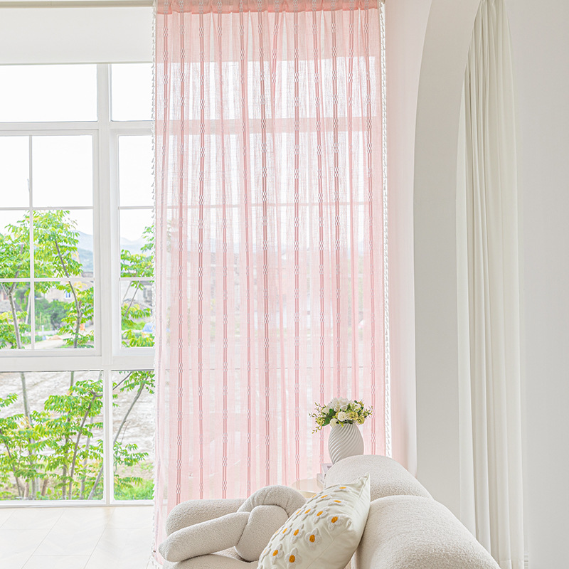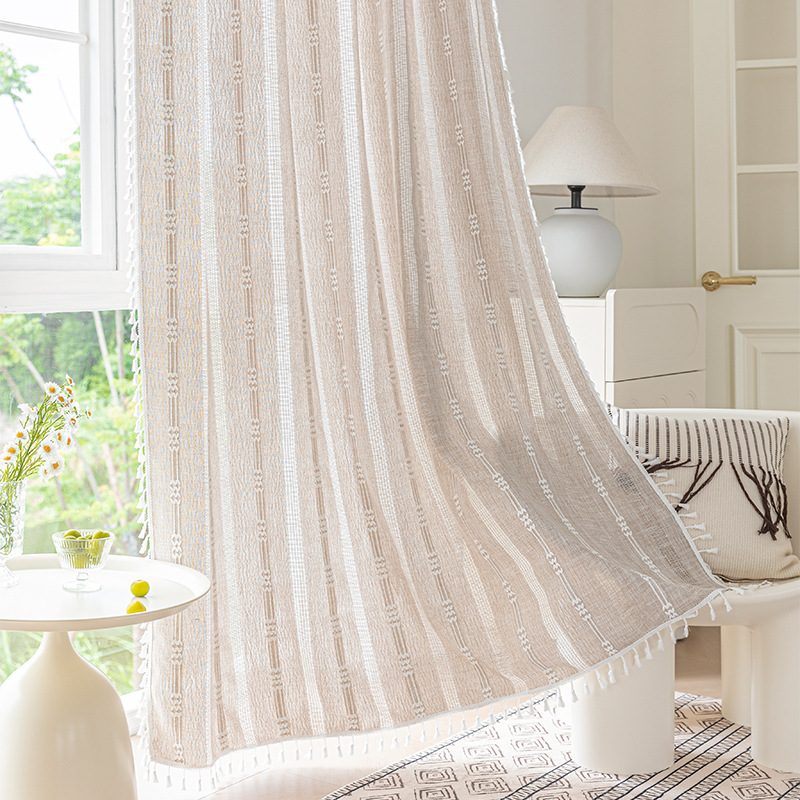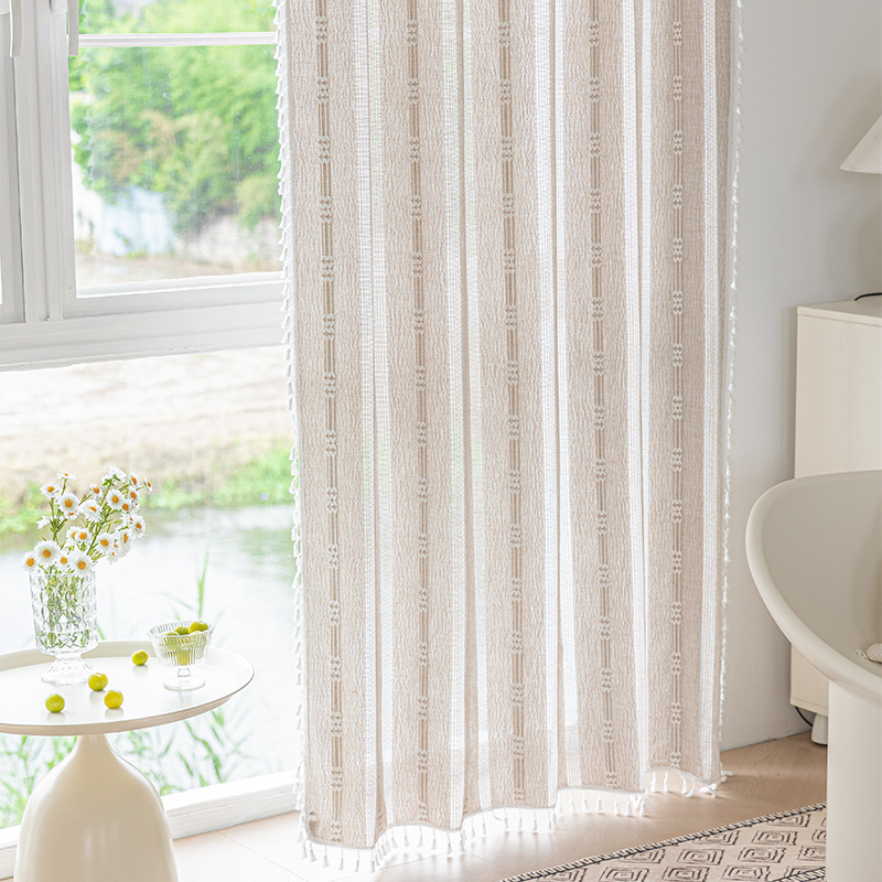 북유럽 면화 및 린넨 커튼 전용 크로스 보더 멀티 컬러 단색면 및 린넨 원사 반투명 침실 거실 바닥 커튼