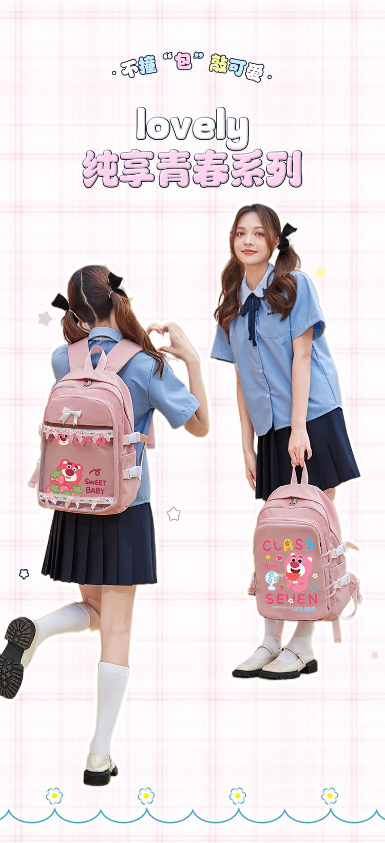 딸기 곰 Xueba 책가방 여학생 3 ~ 6 학년 만화 패션 배낭 어린이 대용량 배낭스토어 가기
