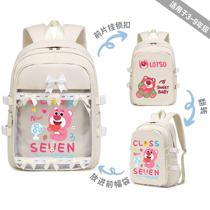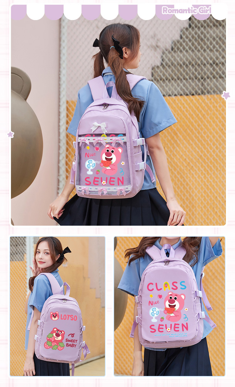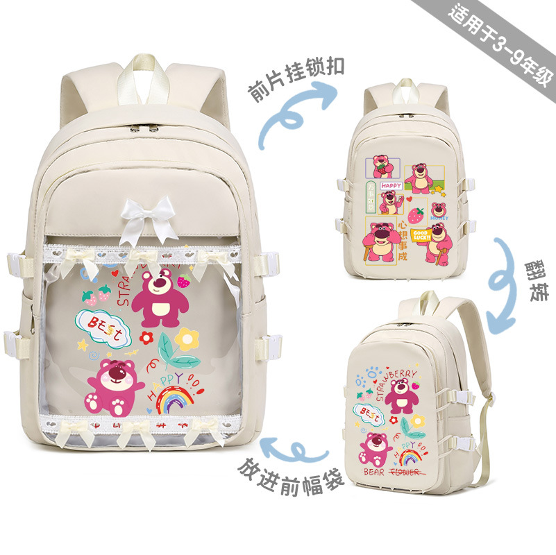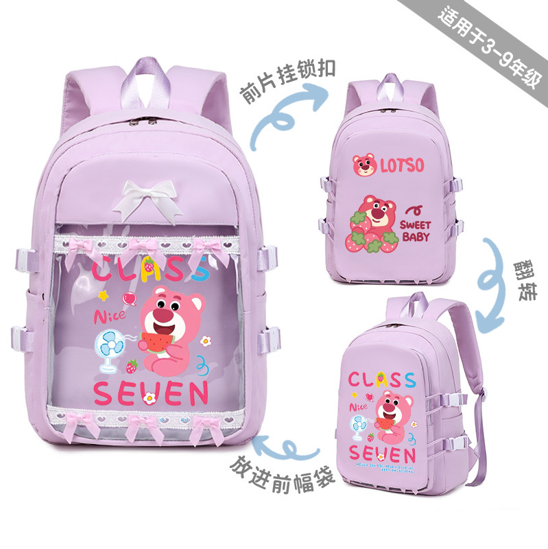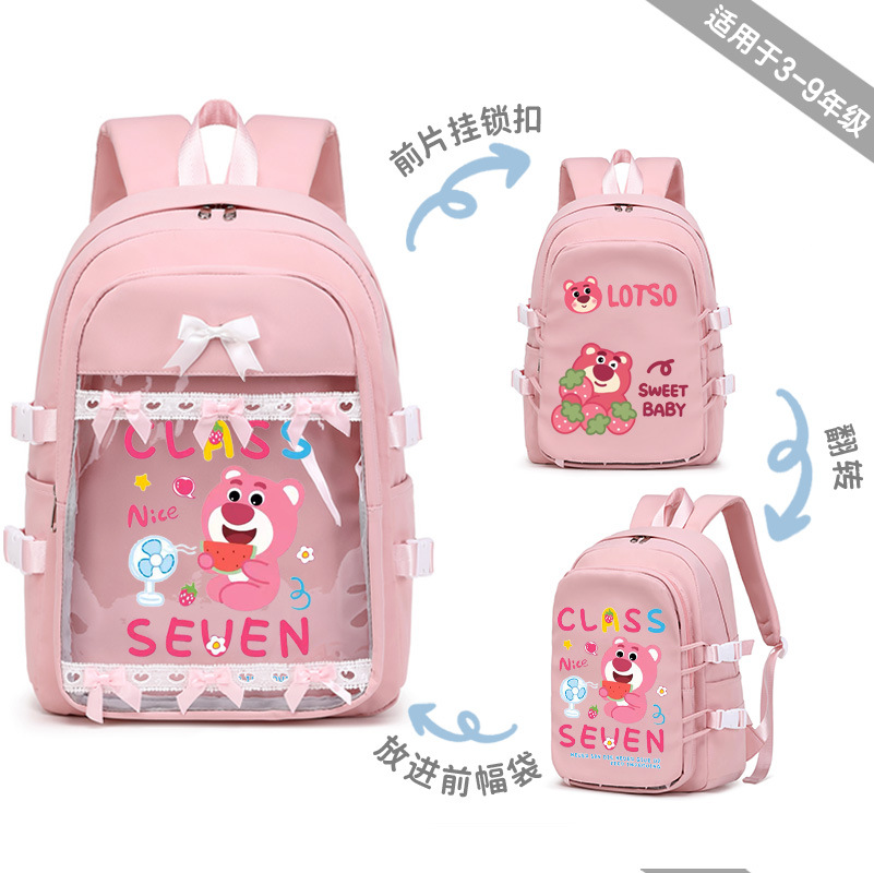 딸기 곰 Xueba 책가방 여학생 3 ~ 6 학년 만화 패션 배낭 어린이 대용량 배낭
