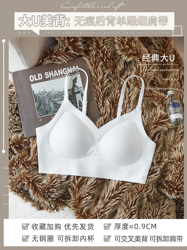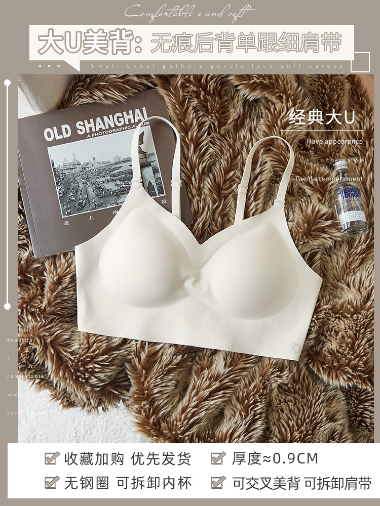 여름 얇은 섹시한 U자형 아름다운 등 속옷 여성용 원피스 아우터 조끼 무봉제 등이없는 작은 가슴 푸시 업 브라스토어 가기