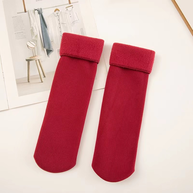 여성용 겨울 양털 양말, 두꺼운 보온 중목 양말, 가을 겨울용 테리 홈 양말