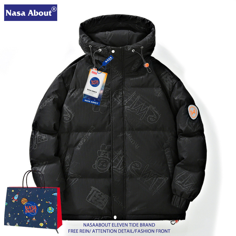 NASA 정보 다운 재킷 남성 겨울 2023 새로운 경량 두꺼운 따뜻한 흰색 오리 다운 겨울 재킷 유행스토어 가기