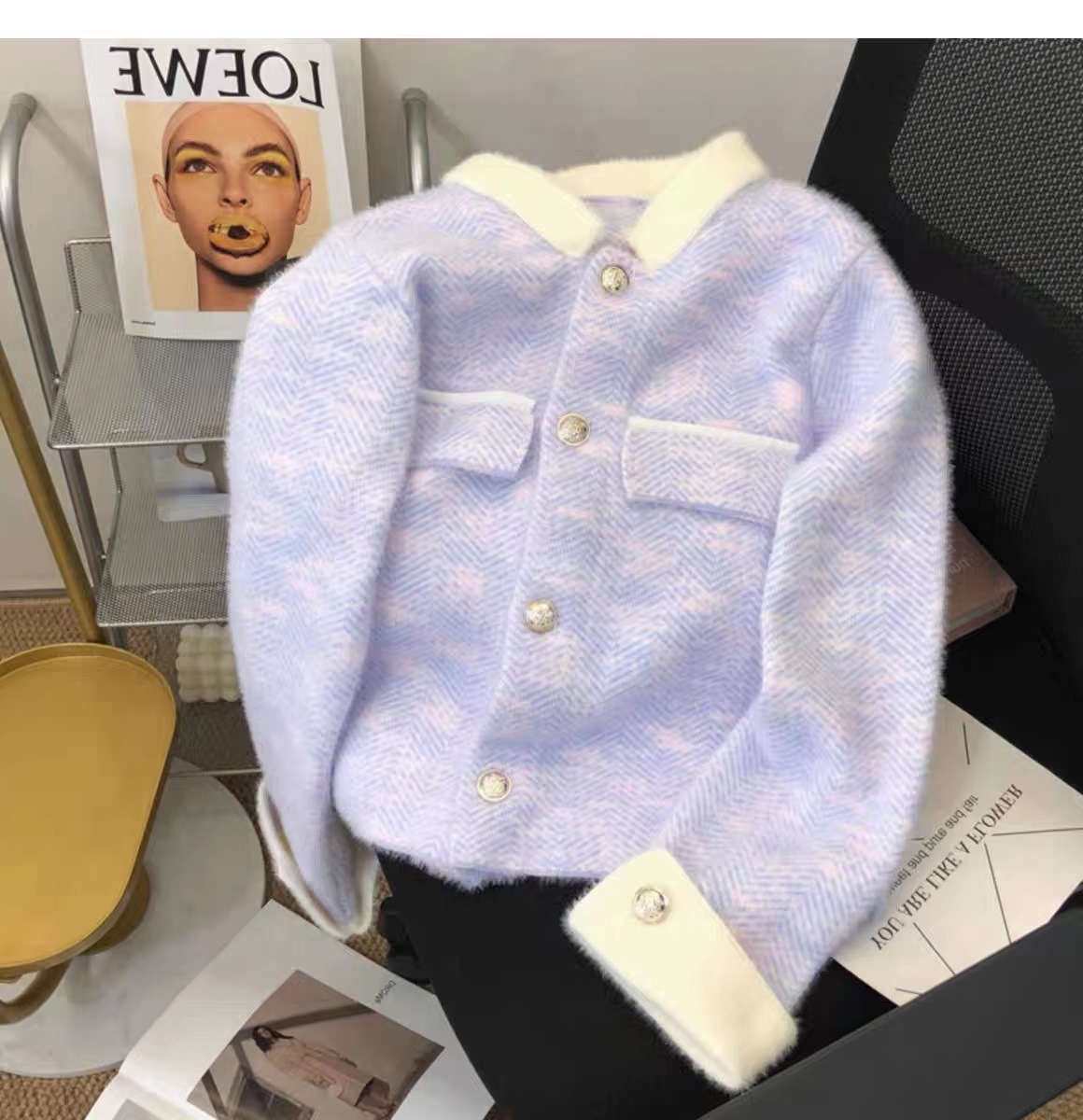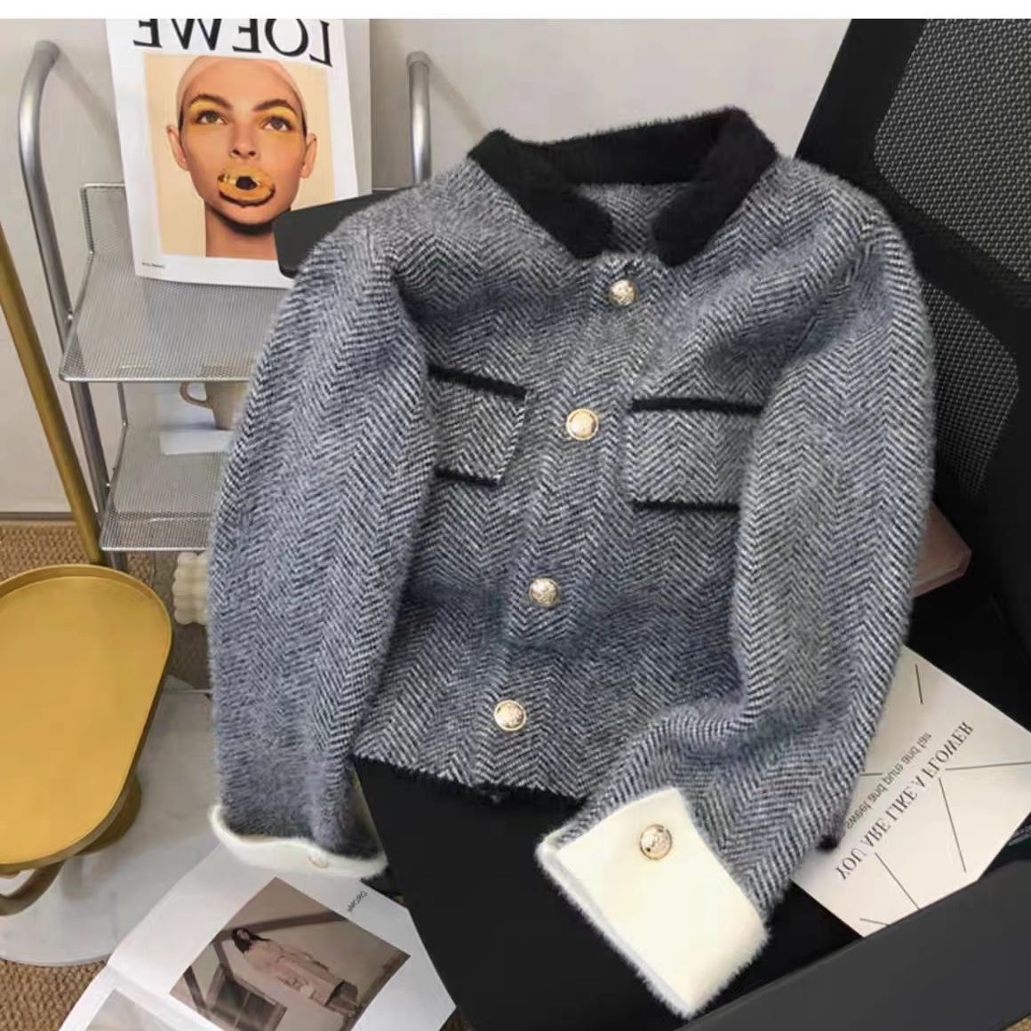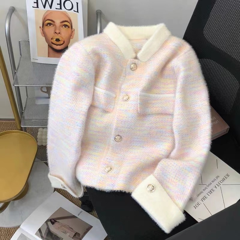 모조 밍크 벨벳 고급 향기로운 스타일 카디건 여성용 봄과 가을 폴로 넥 두꺼운 스웨터 코트 우아한 니트 탑