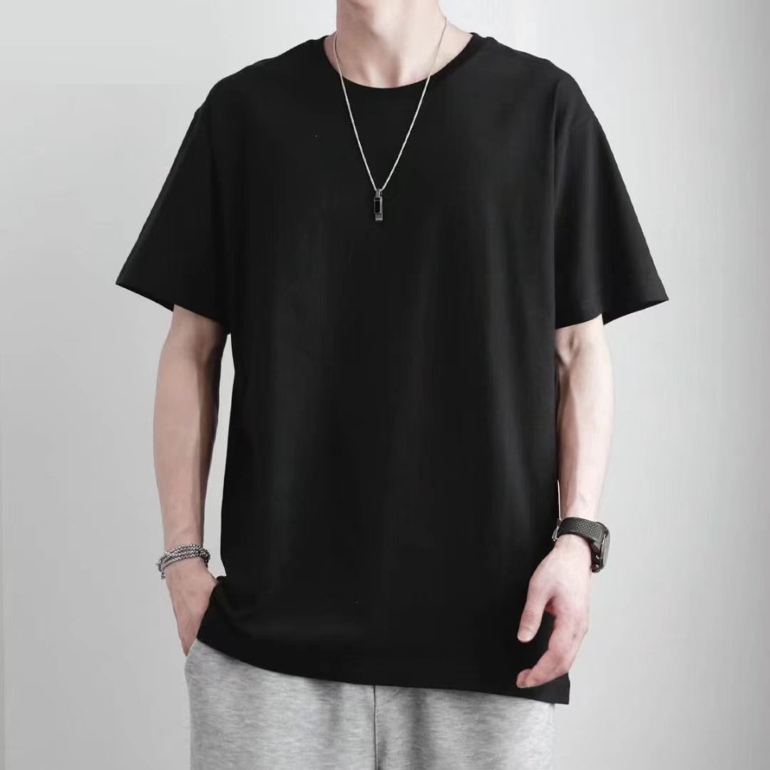 220g 빗질 코튼 헤비 웨이트 100% 면 라운드 넥 베이스 티셔츠 반팔 티셔츠 남성과 여성의 느슨한 레저 트렌드 여름