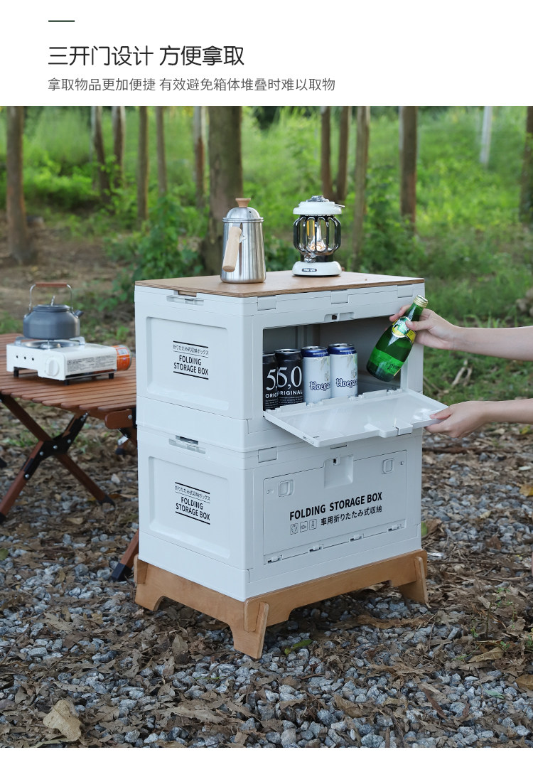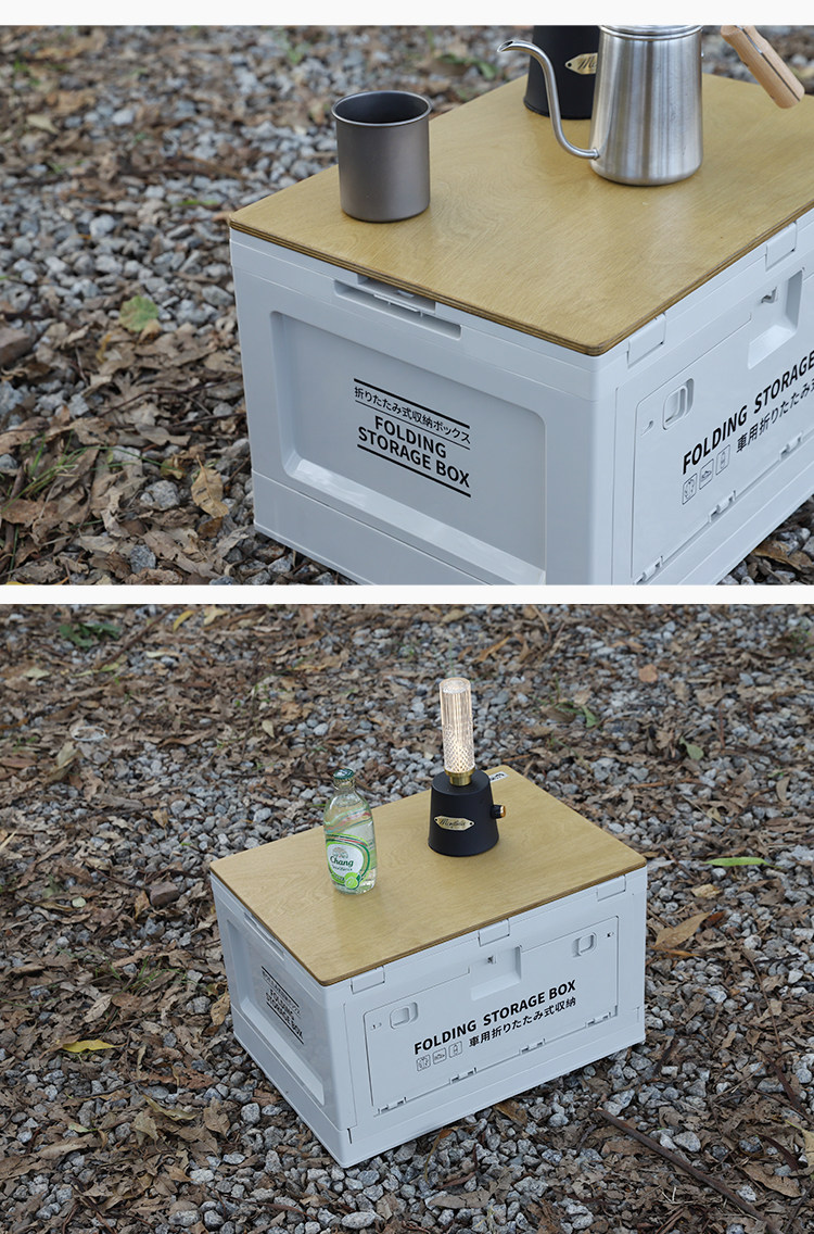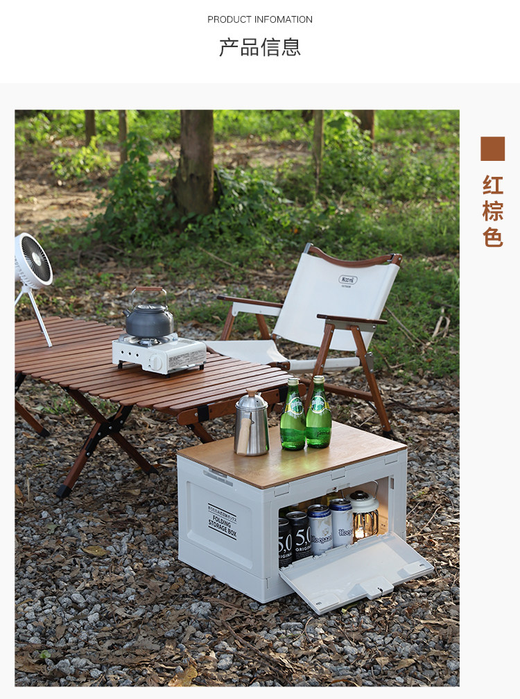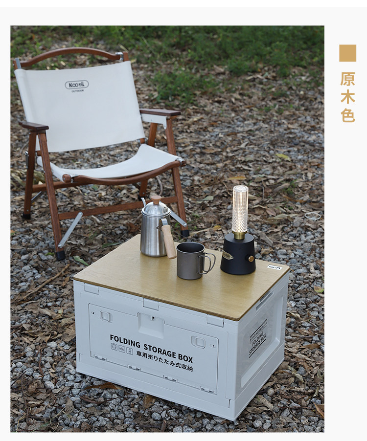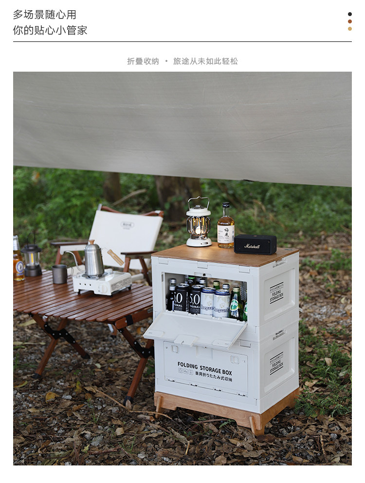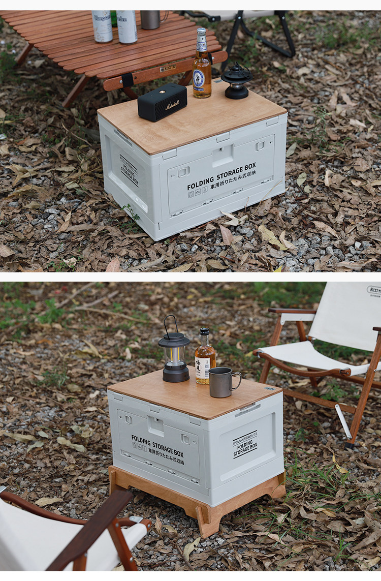 3ZBY 캠핑 측면 보관함 두꺼운 앉아 테이블 자동차 백업 보관함 야외 피크닉 대용량 나무 뚜껑 접는스토어 가기