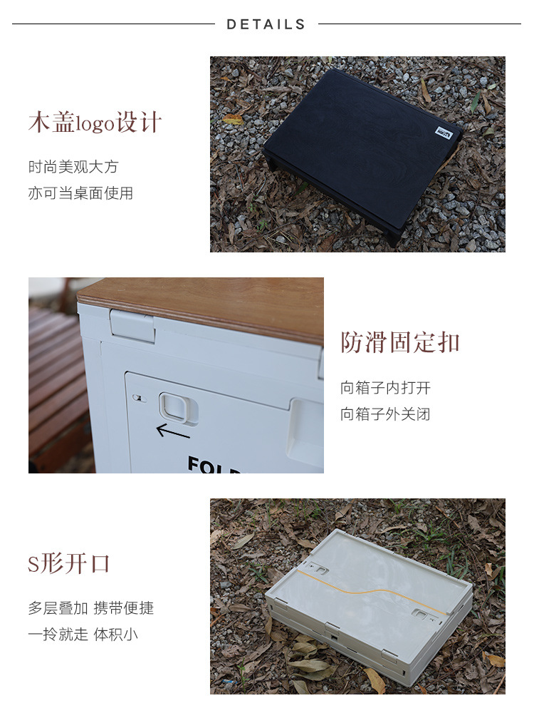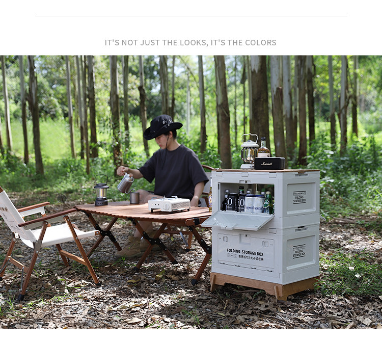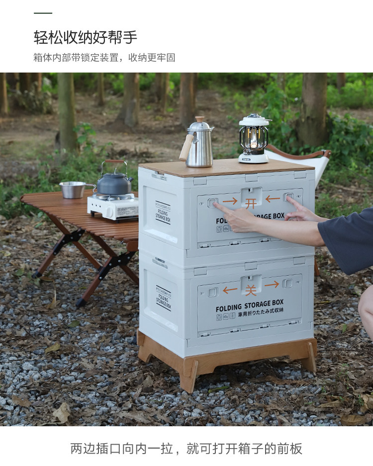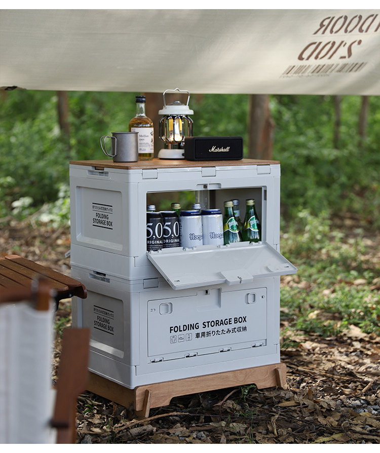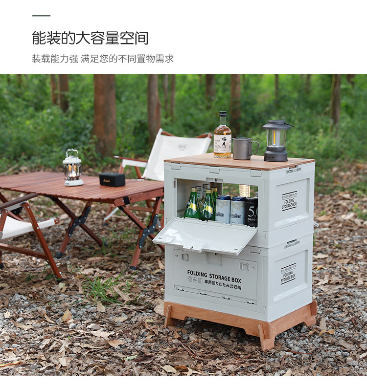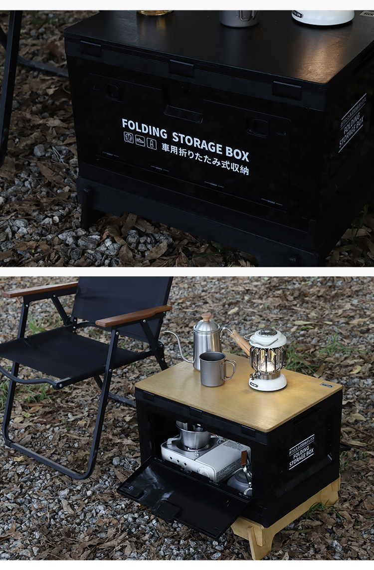 3ZBY 캠핑 측면 보관함 두꺼운 앉아 테이블 자동차 백업 보관함 야외 피크닉 대용량 나무 뚜껑 접는스토어 가기