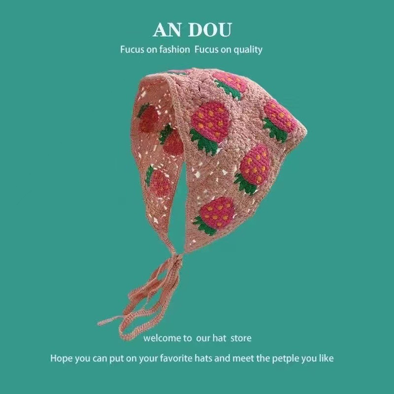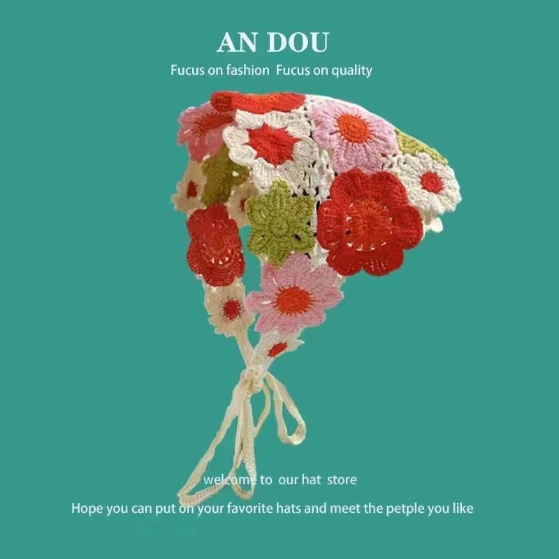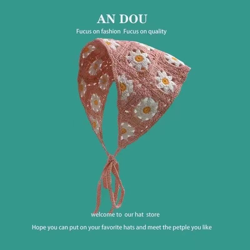 봄과 가을 한국 패션 니트 크로 셰 뜨개질 중공 삼각형 스카프 여자의 달콤한 귀여운 소녀 스타일 꽃 머리 스카프 헤어 밴드 유행