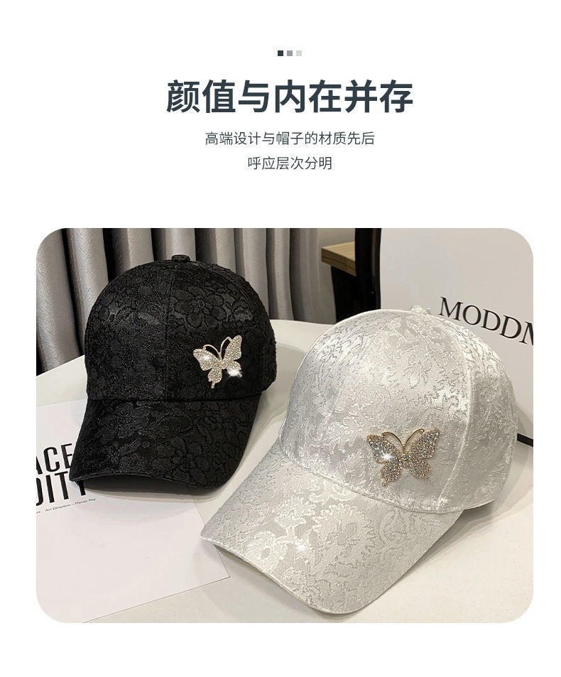 모자 여성용 봄과 여름 2022 폭발 모자 라인 석 나비 골드 실크 면 여성 야구 모자 자외선 차단제 통기성 모자