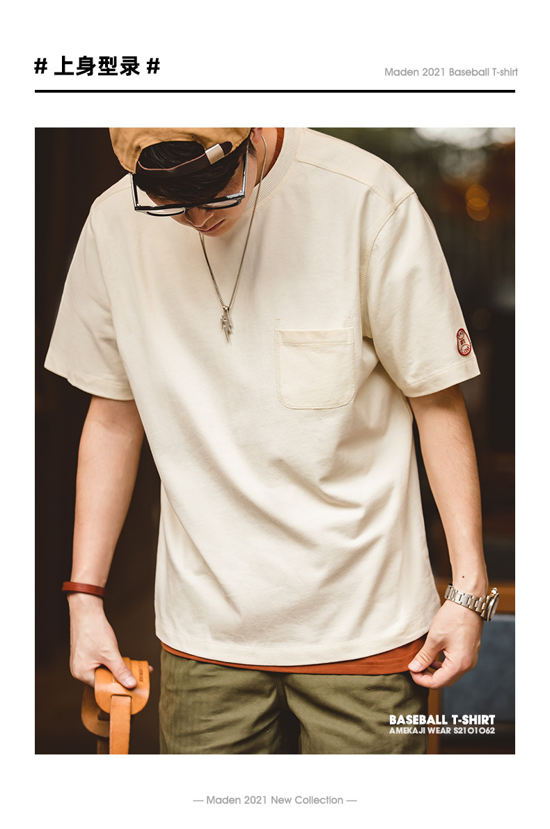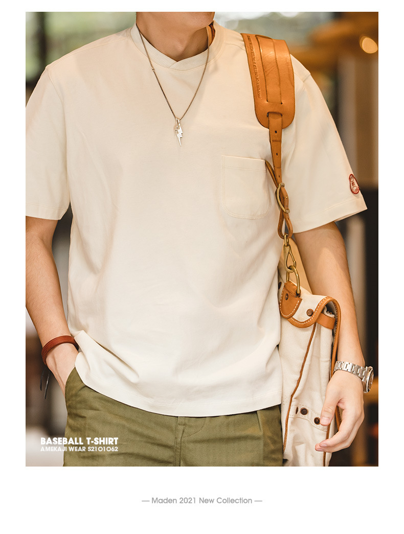 Madden Workwear 레트로 헤비급 티셔츠 야구 칼라 포켓 루즈 스포츠 반팔 반팔 셔츠 남성용 여름스토어 가기