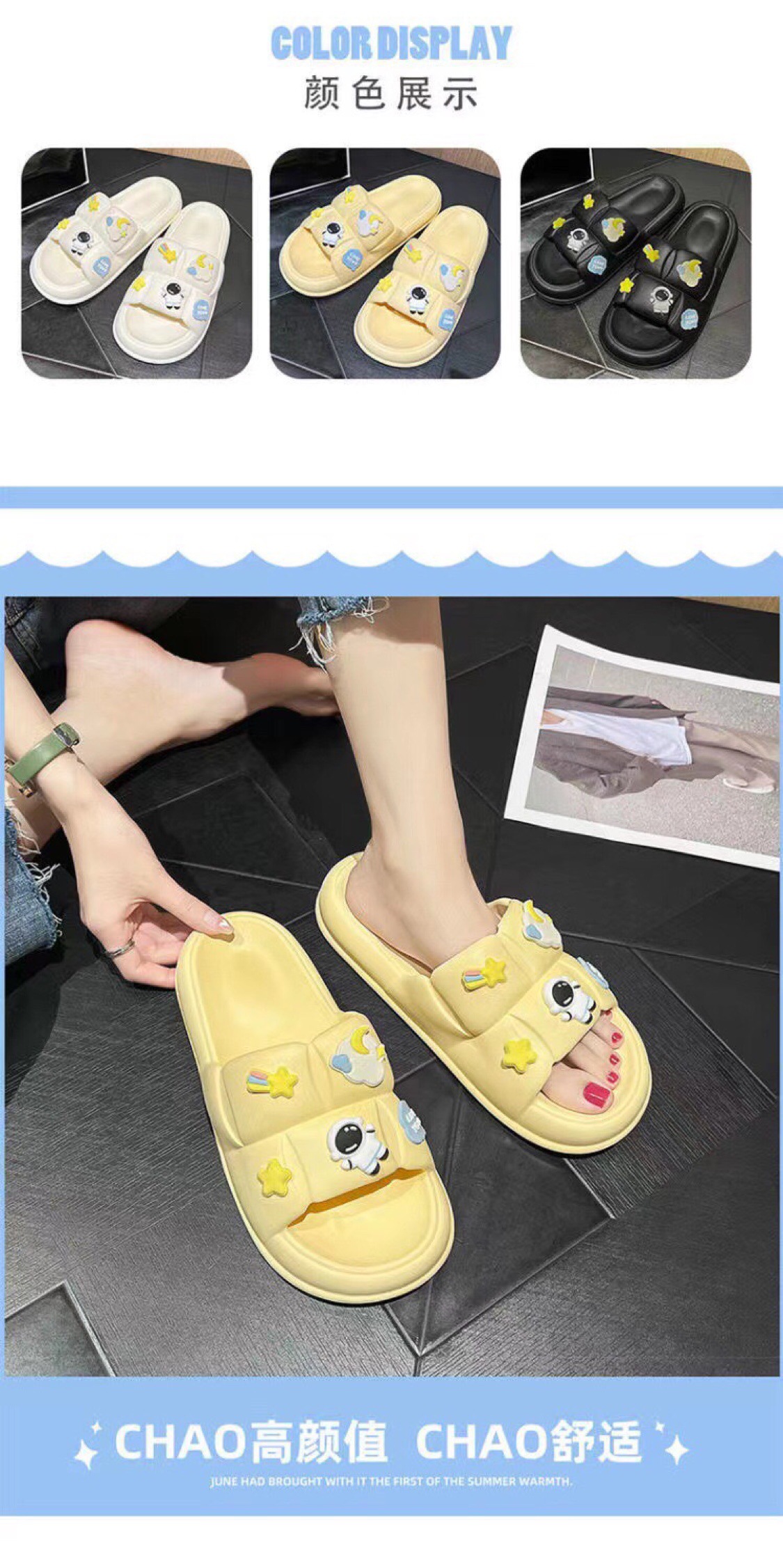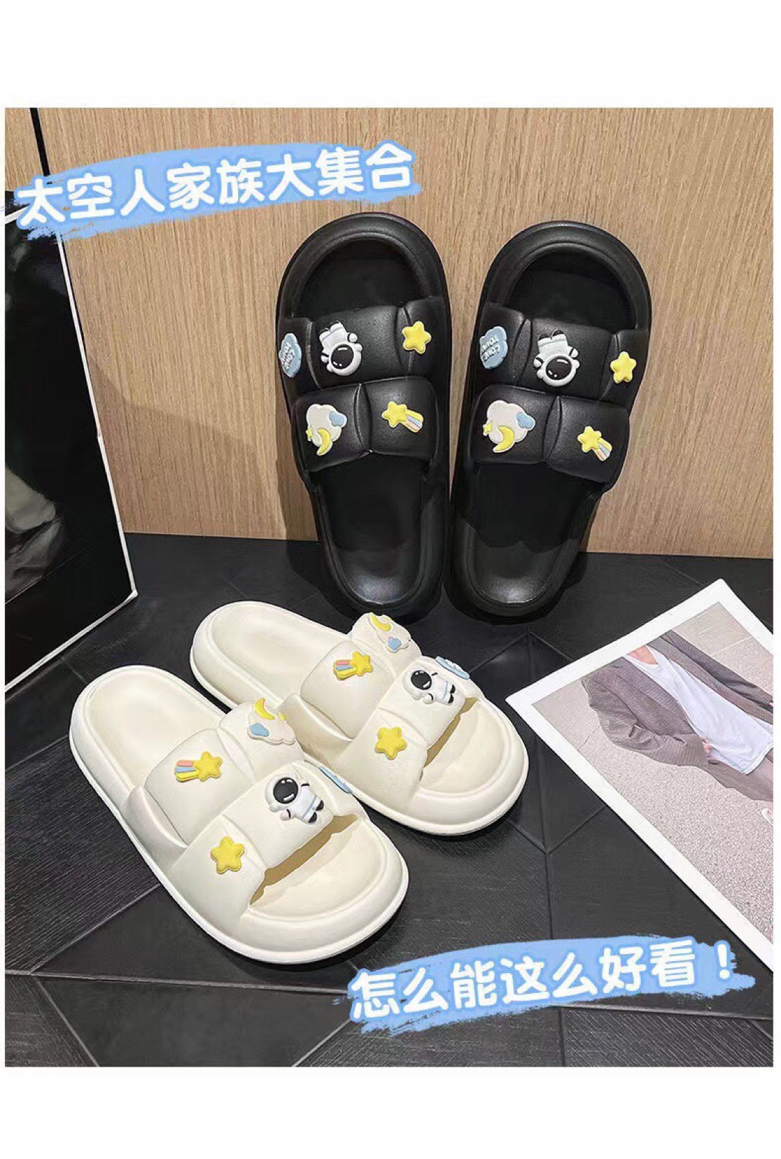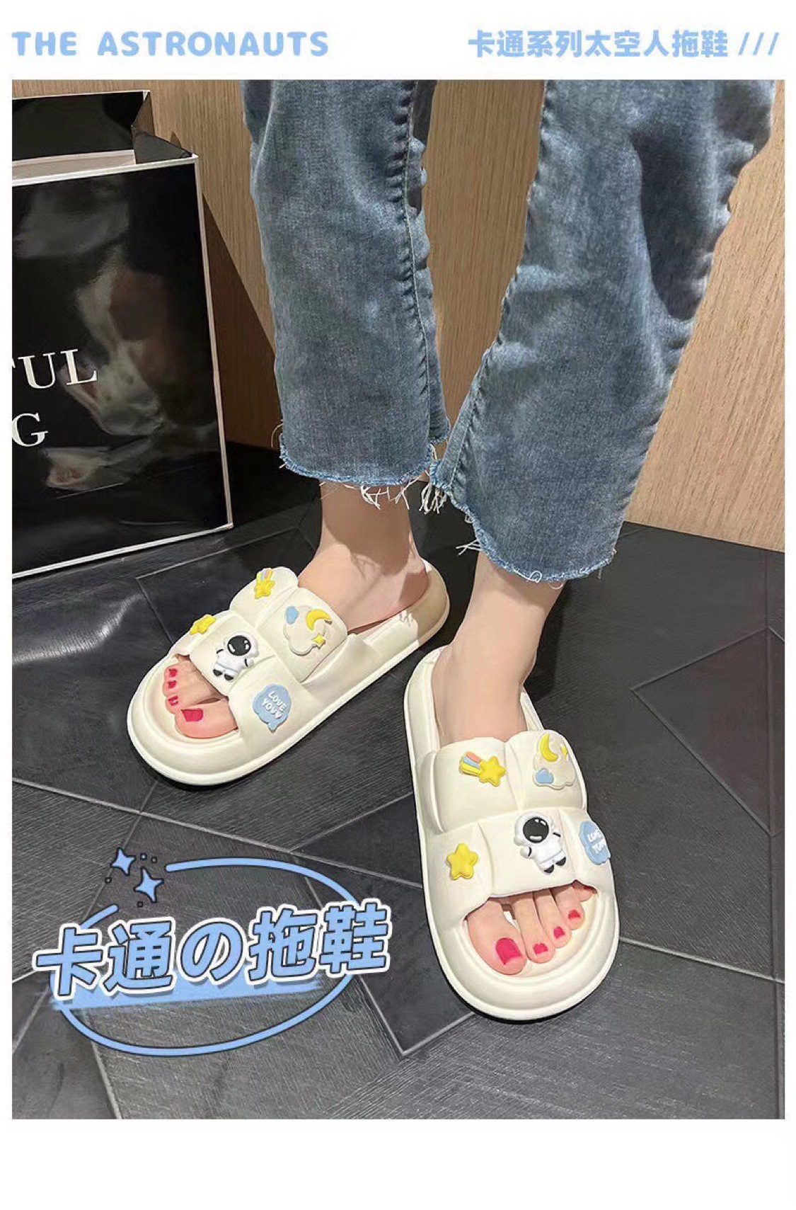 슬립온 슬리퍼 여성 여름 만화 우주인 실내 커플 홈 목욕 미끄럼 방지 두꺼운 바닥 가정용 겉옷 샌들