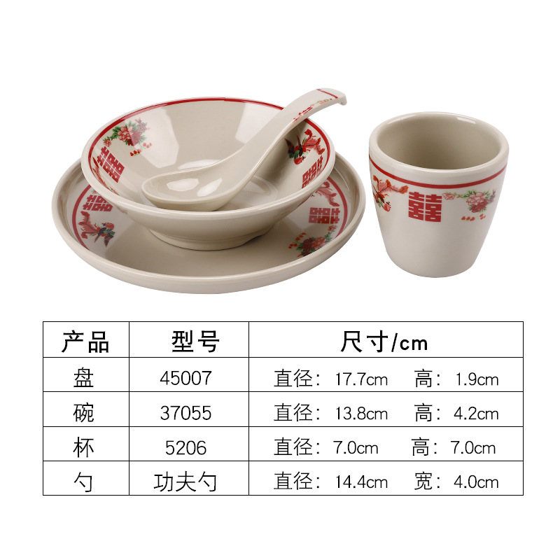 멜라민 빈티지 더블 행복 식기 창조적 인 냄비 가게 요리 수프 그릇 호텔 테이블 멜라민 모방 도자기 국수 그릇
