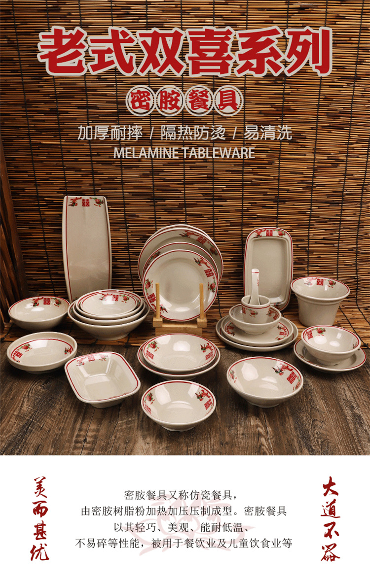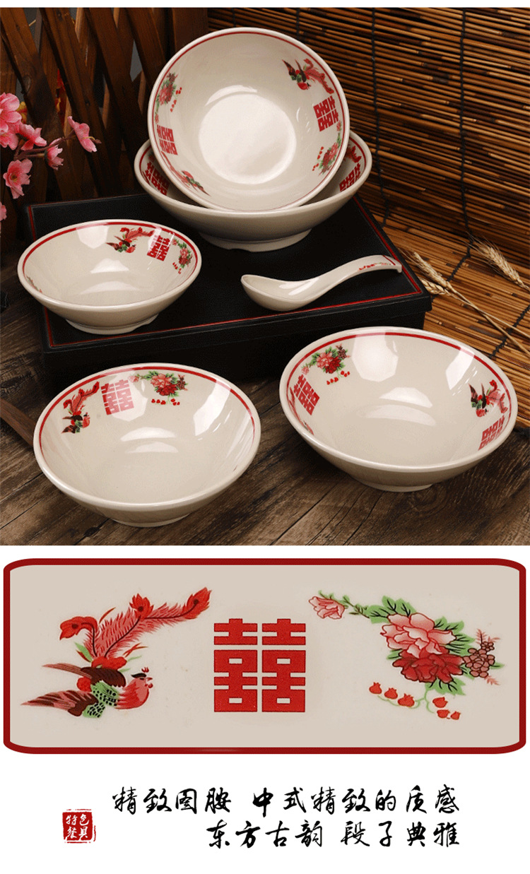 멜라민 빈티지 더블 행복 식기 창조적 인 냄비 가게 요리 수프 그릇 호텔 테이블 멜라민 모방 도자기 국수 그릇스토어 가기