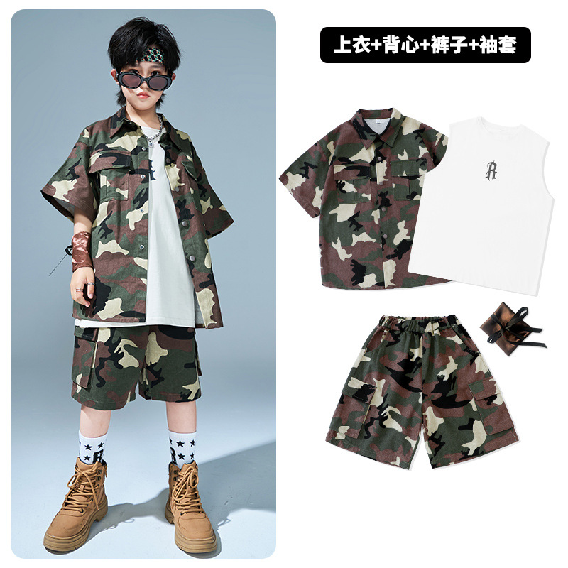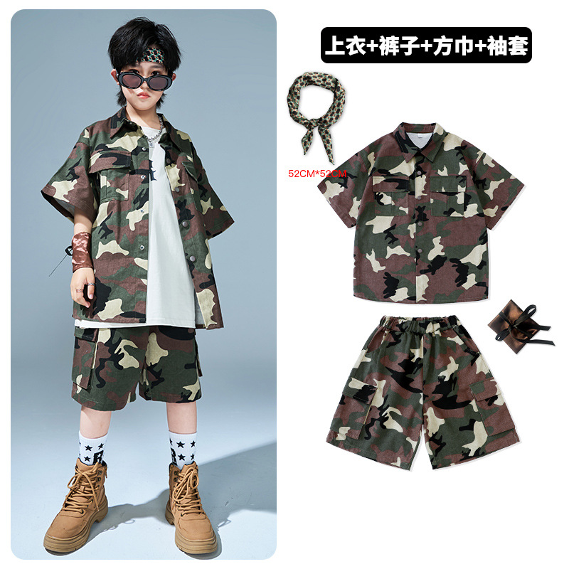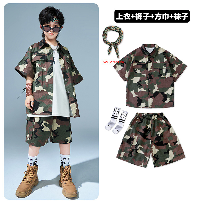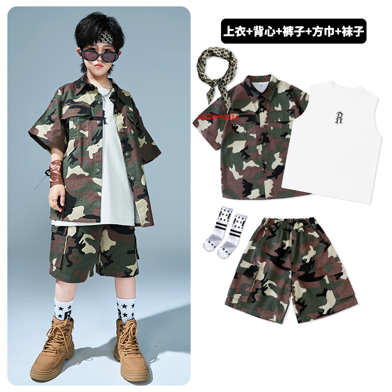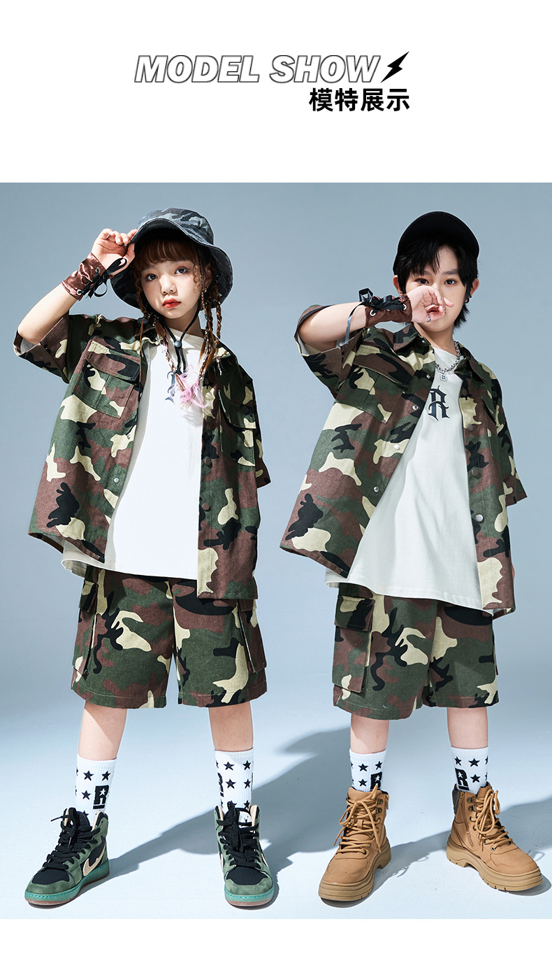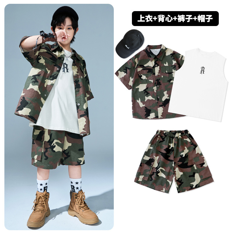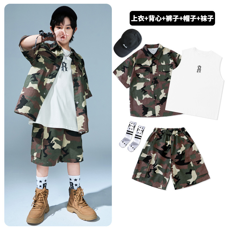 어린이 힙합 패션 의류 소년 카키 위장 세트 힙합 댄스 옷 어린이 힙합 소녀 공연 옷스토어 가기