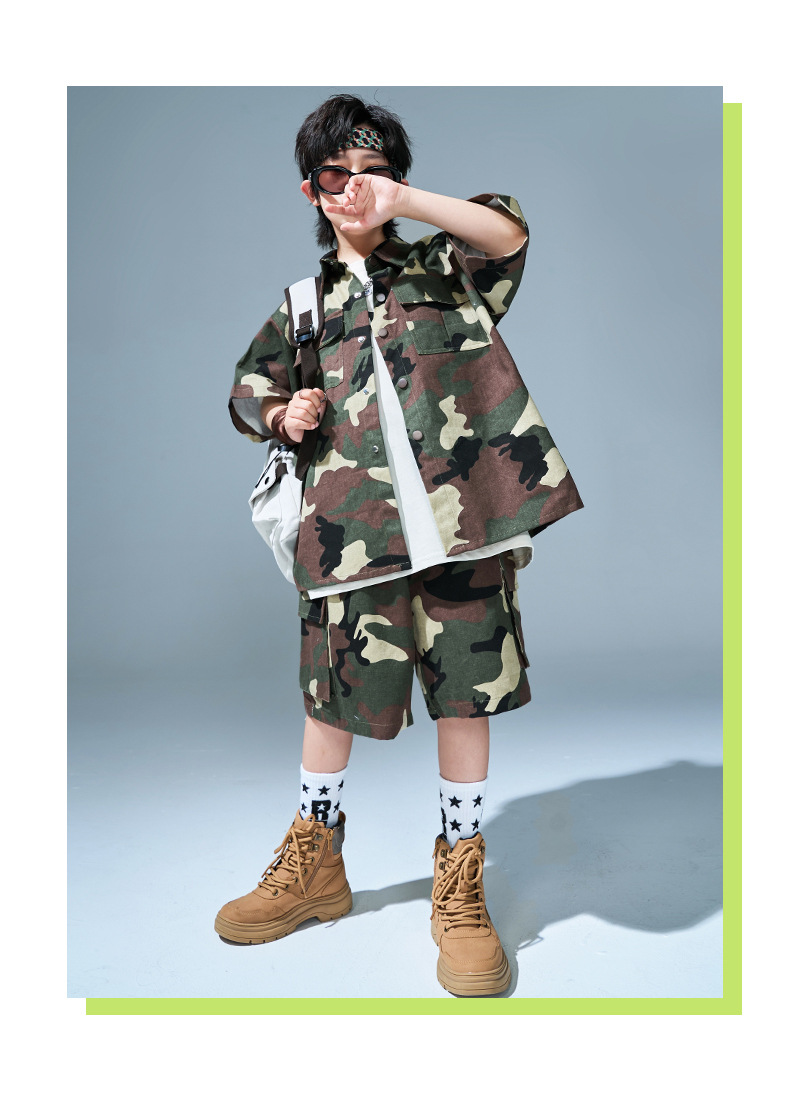 • 투피스 세트 [녹색 위장 셔츠 + 카키 반바지]]