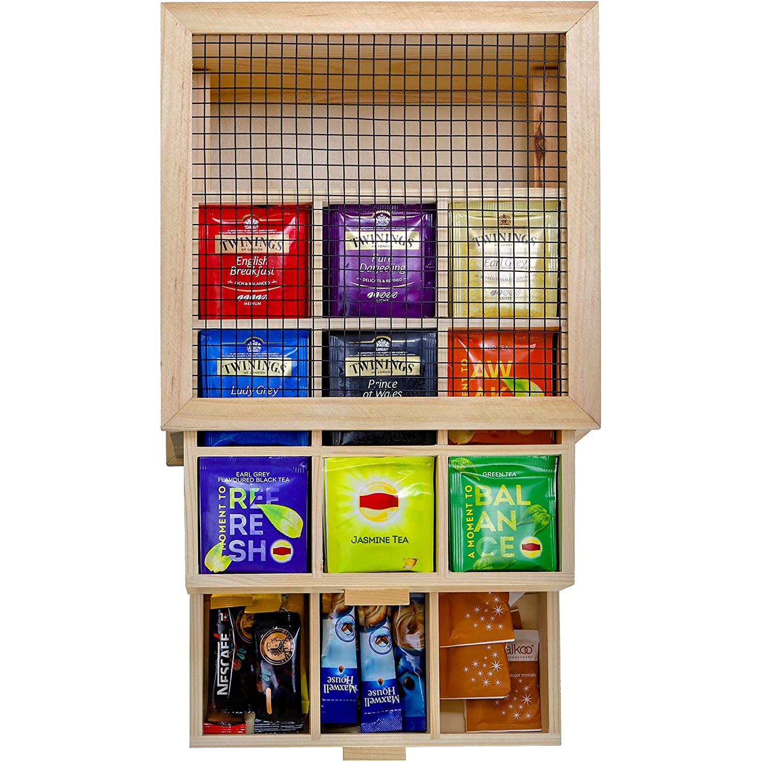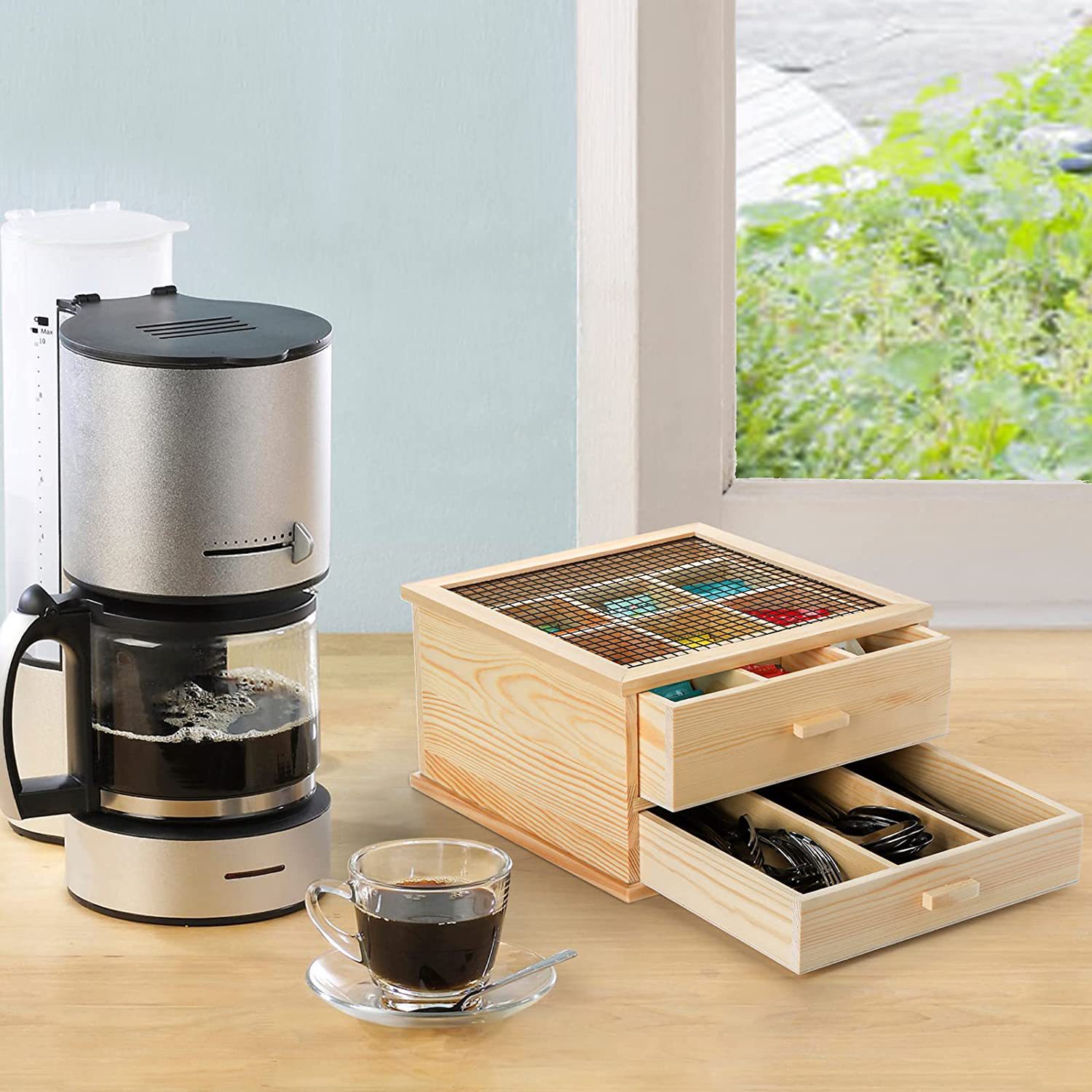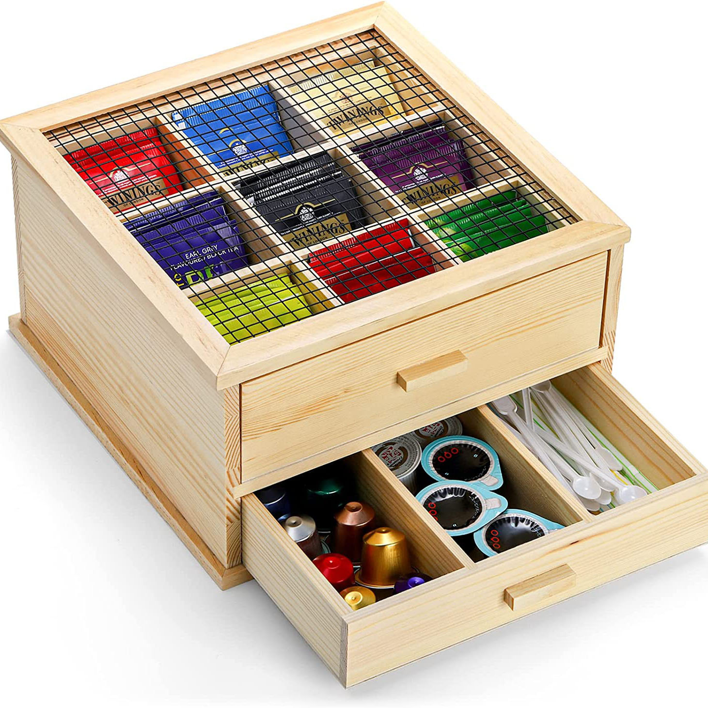 나무 서랍 저장 상자 멀티 구획 저장 가정용 차 가방 커피 캡슐 저장 콩 우유 커피 기계 저장 나무 상자
