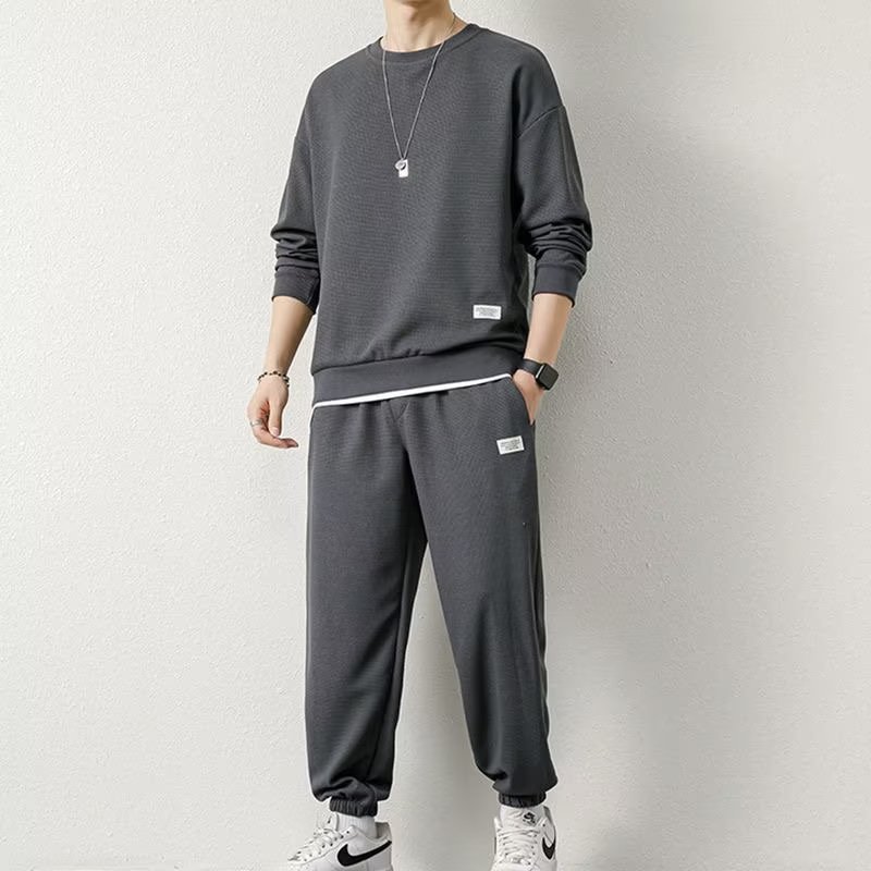 와플 캐주얼 세트 남자의 가을과 겨울 유행 느슨한 긴팔 바지 남자복 잘 생긴 옷 세트
