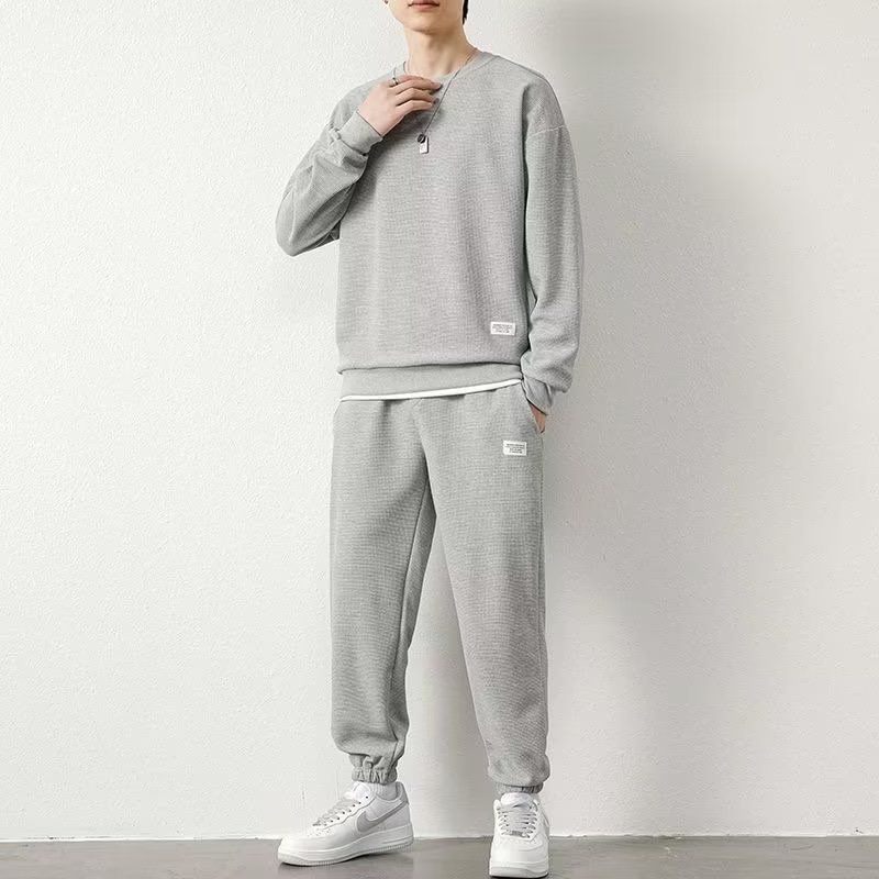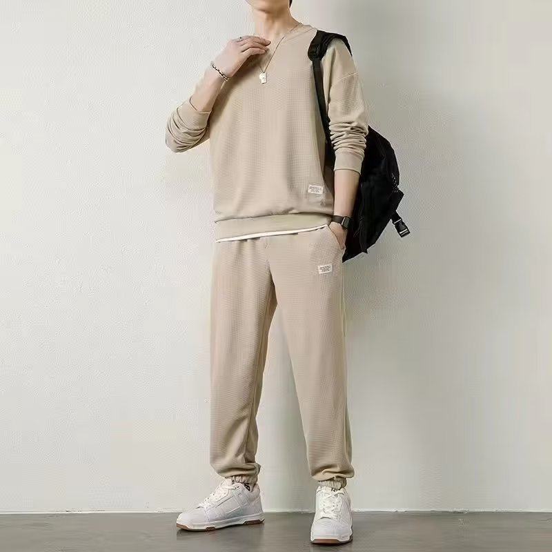 와플 캐주얼 세트 남자의 가을과 겨울 유행 느슨한 긴팔 바지 남자복 잘 생긴 옷 세트스토어 가기