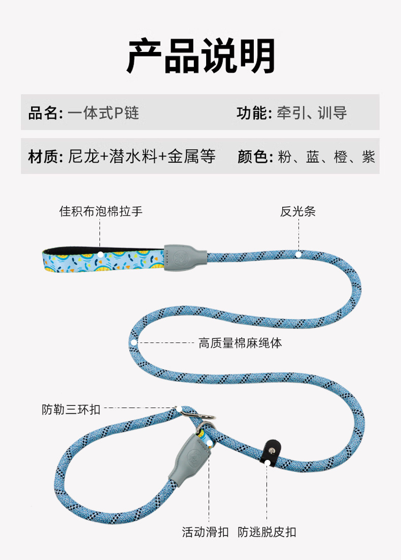 새로운 애완견 견인 로프 다리 방지 목 방폭 P 로프 대형, 중형 및 소형 개를 위한 일반 개 로프 개 체인