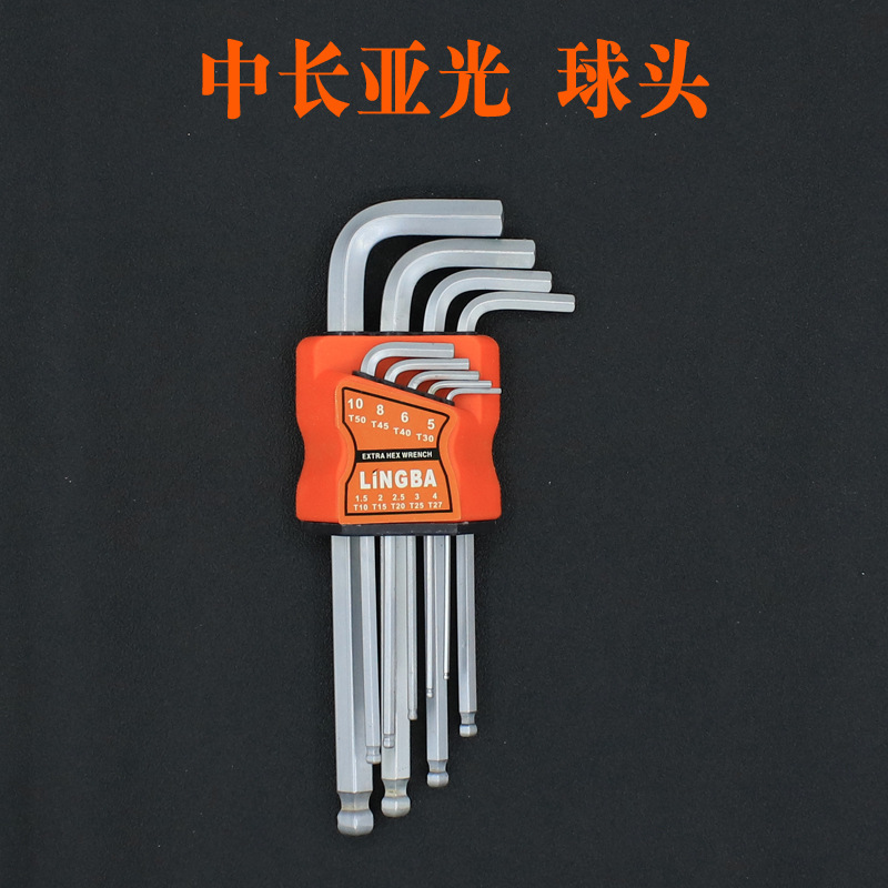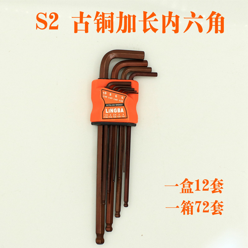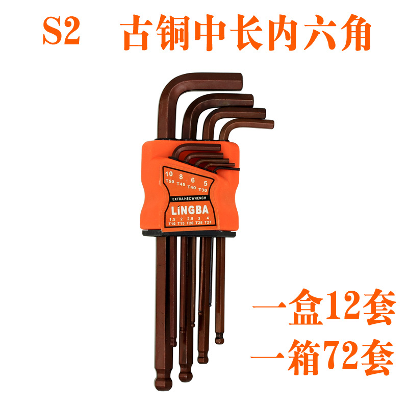 링바 S2 구리색 육각 렌치 중간길이 무광 세트, 흑색 강화 육각 키, 두껍고 내구성 있음