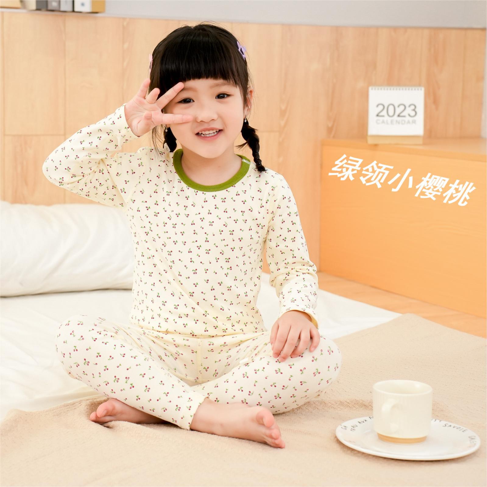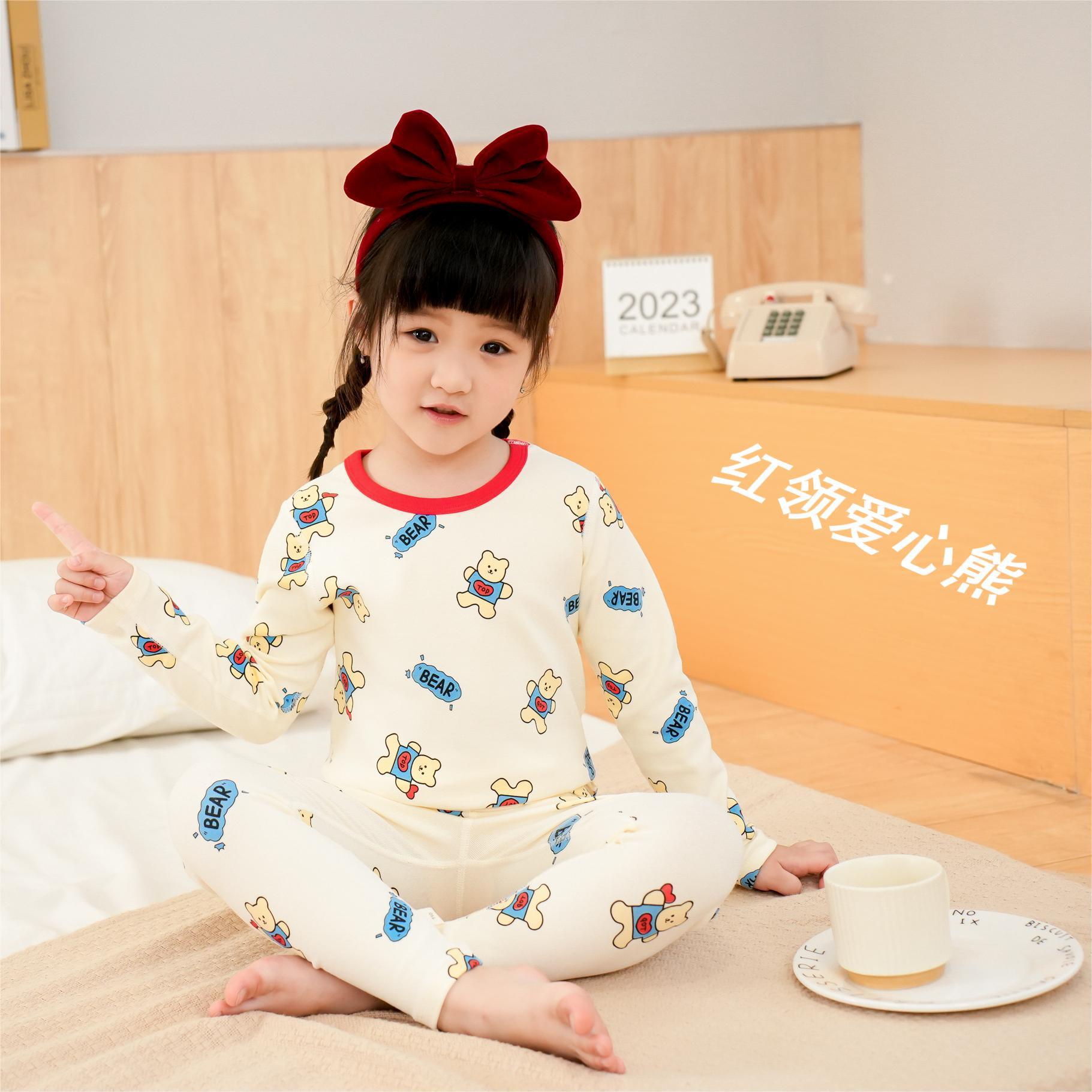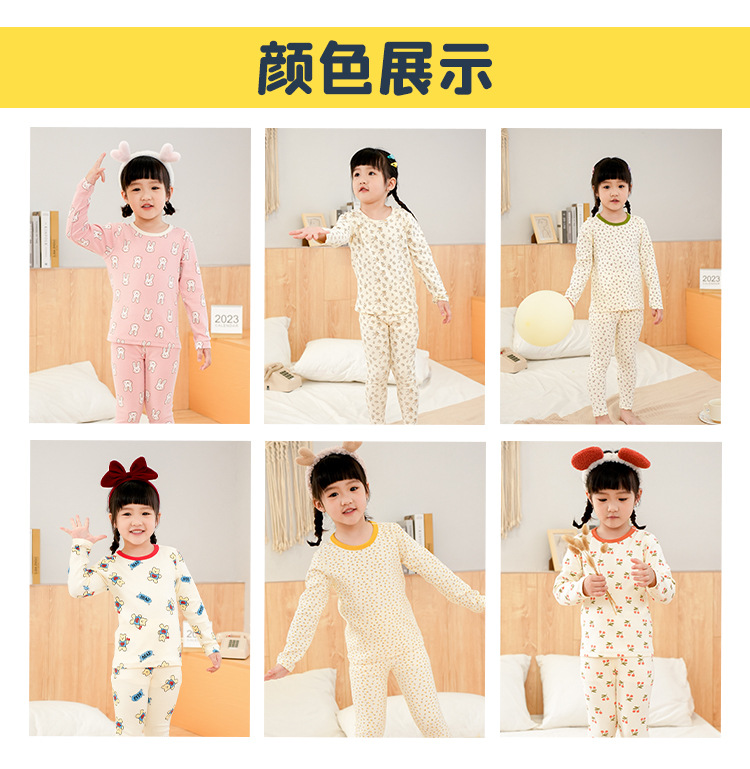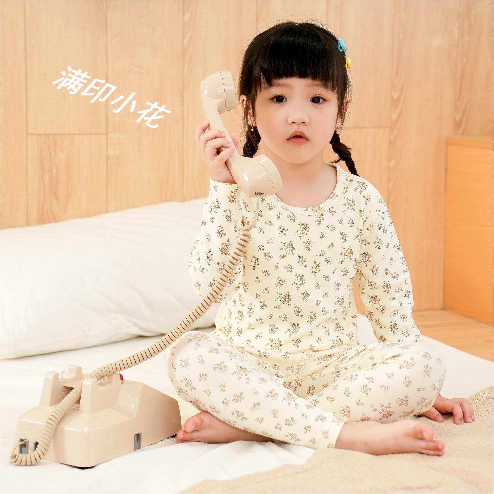뼈 없는 어린이용 코마면 신축성 있는 봄, 가을, 겨울 홈웨어 여아용 긴팔 잠옷 세트, 가을옷, 가을바지, 두꺼운 보온성스토어 가기