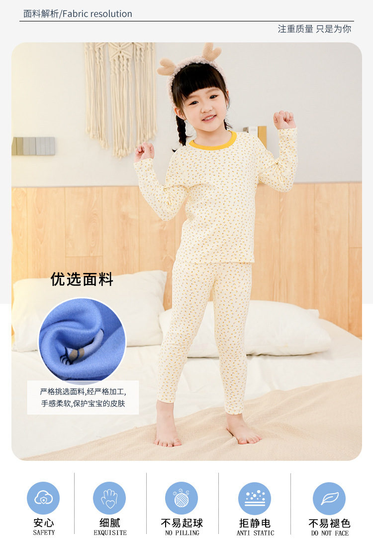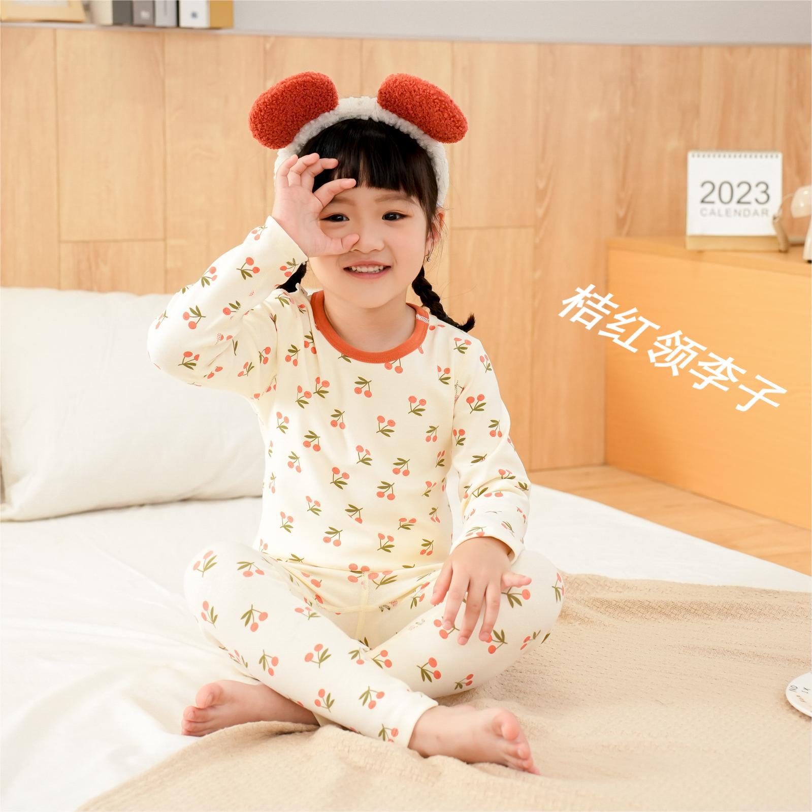 뼈 없는 어린이용 코마면 신축성 있는 봄, 가을, 겨울 홈웨어 여아용 긴팔 잠옷 세트, 가을옷, 가을바지, 두꺼운 보온성