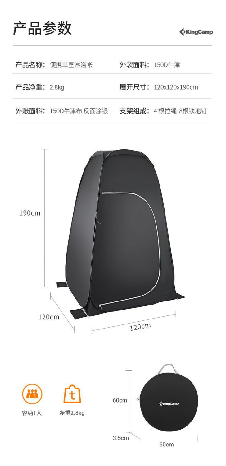 KingCamp 야외 화장실 비치 휴대용 팝업 다기능 캠핑 텐트 욕실 샤워 라커룸스토어 가기