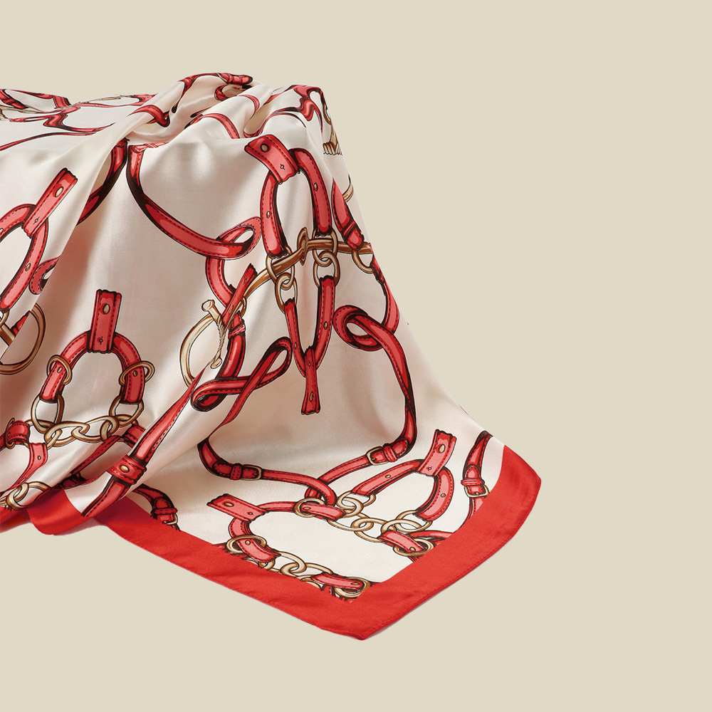 새로운 스타일 실크 심플 기하학 체인 인쇄 90 스퀘어 고급 라이트 럭셔리 모든 매치 여름 Baotou 실크 스카프 여성용